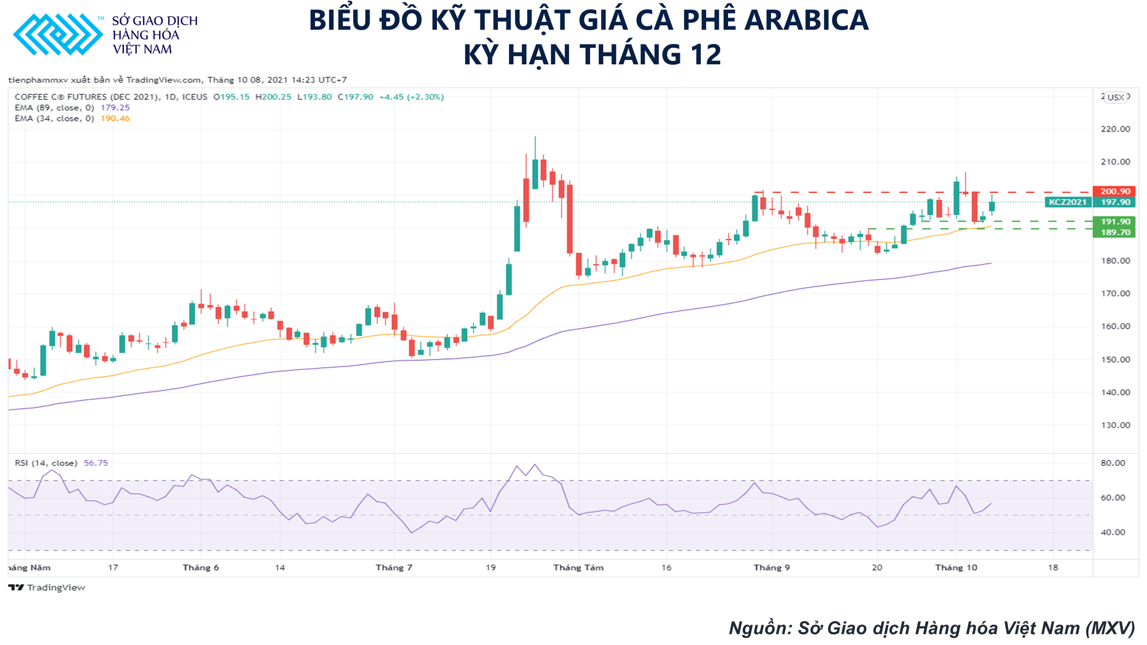 Biểu đồ phân tích kỹ thuật giá Arabica kỳ hạn tháng 12 (Nguồn: Sở giao dịch Hàng hóa Việt Nam)
