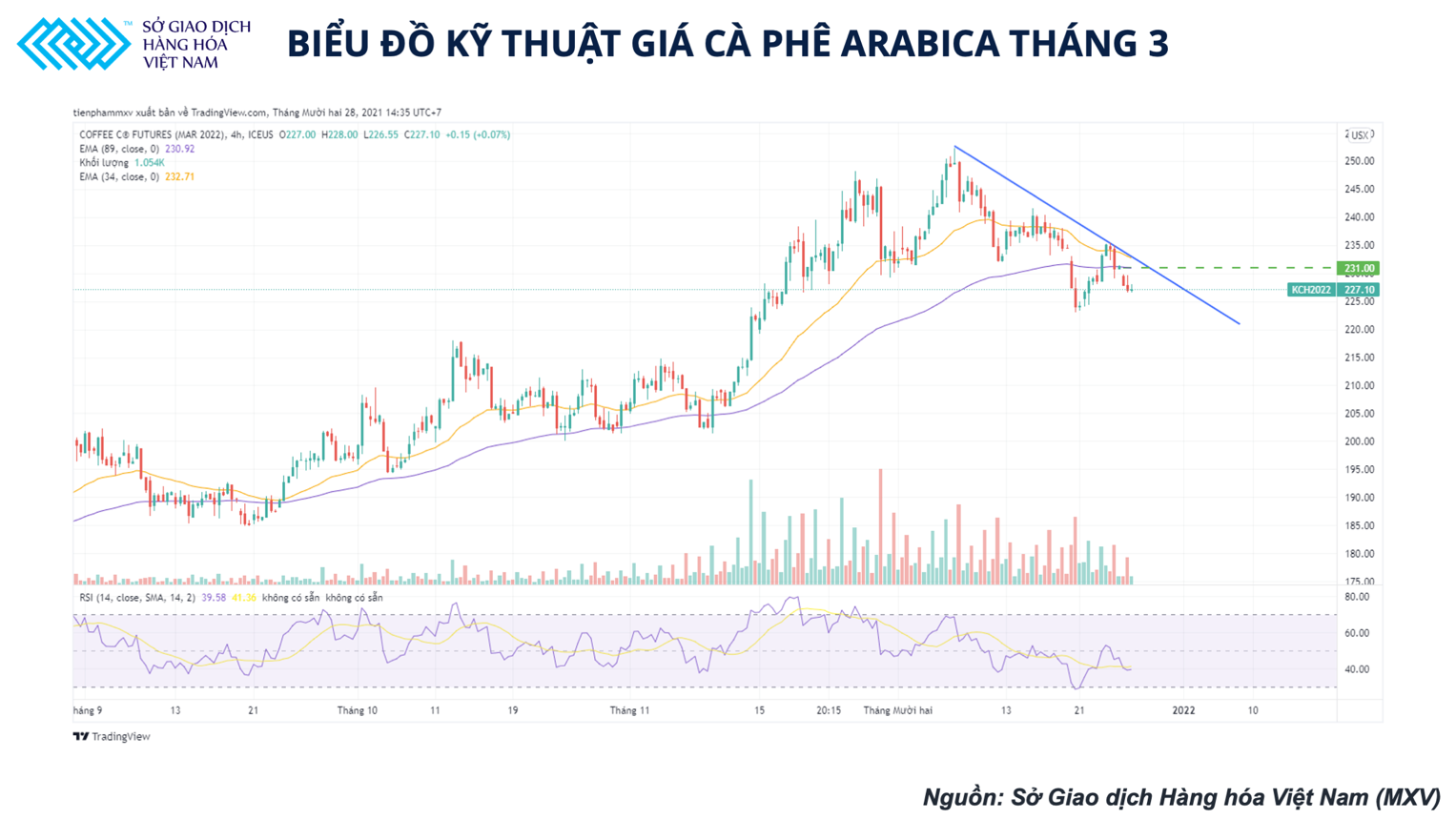 Biểu đồ kỹ thuật giá cà phê Arabica tháng 3 (Nguồn: Sở giao dịch Hàng hóa Việt Nam)