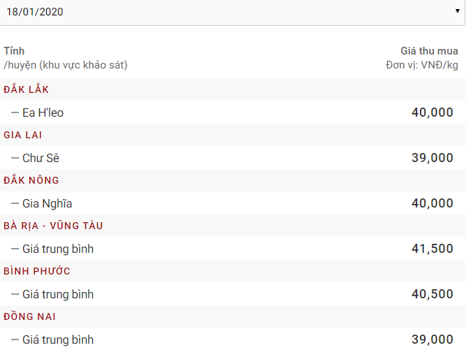 Thời điểm này, ngành hồ tiêu đã bước vào niên vụ mới, khi mà nhiều vườn tiêu ở Đăk Nông tiến hành thu hoạch. Trong những ngày đầu tháng 1 này, dự báo giá tiêu vẫn ổn định ở mức từ 39.000-42.000 đồng/kg.