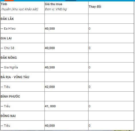 Như vậy, giá hồ tiêu toàn miền hôm nay được thu mua trong khoảng từ 40.000 - 42.000 đồng/kg.