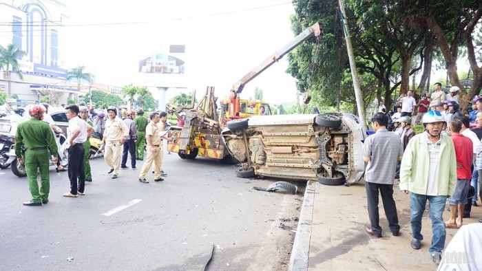 Sau đó, chiếc xe này tông vào 5 xe máy đang dừng chờ đèn tín hiệu, rồi tiếp tục lao về phía trước khoảng 40m rồi tông vào ô tô BKS 81A - 083.70 đang lưu thông từ hướng Phan Đình Phùng - Hoa Lư khiến chiếc xe này bị lật. Chiếc xe gây TNGT ngay sau đó cũng đã lao lên vỉa hè đi bộ của Quảng trường Đại đoàn kết, tông gãy trụ điện.