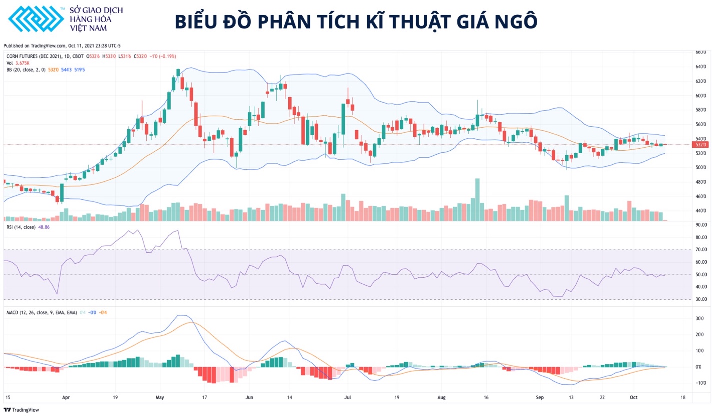 Biểu đồ phân tích kỹ thuật giá ngô (Nguồn: Sở giao dịch Hàng hóa Việt Nam)