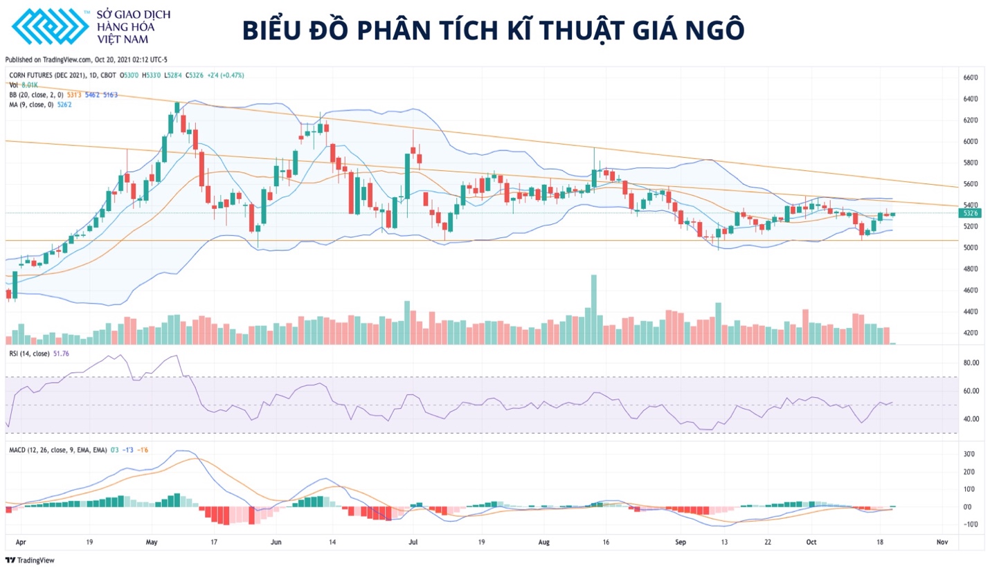 Biểu đồ phân tích kỹ thuật giá ngô (Nguồn: Sở giao dịch Hàng hóa Việt Nam)