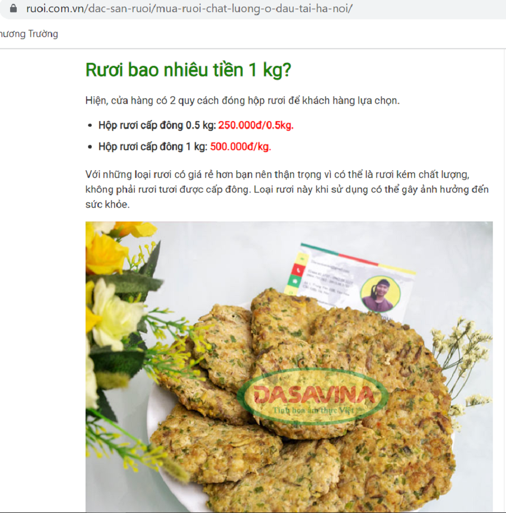 Rươi đông lạnh có giá khoảng 500.000 đồng/kg