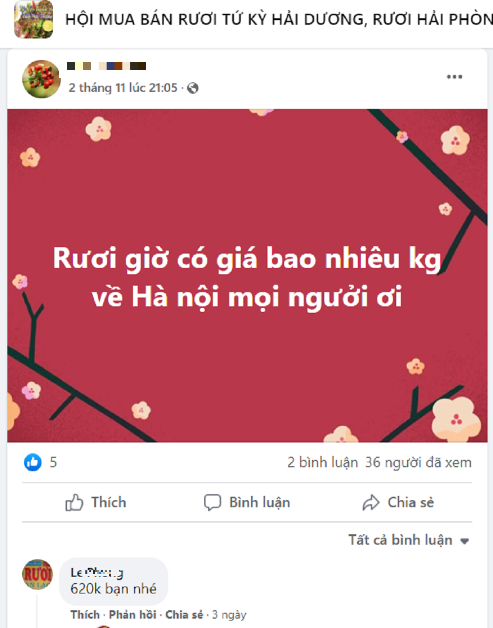 Theo ghi nhận trên mạng xã hội, các group trao đổi thông tin mua bán rươi giá dao động khoảng 620.000 đồng/kg, dù đắt đỏ nhưng nhiều khách hàng cũng không có hàng để mua.