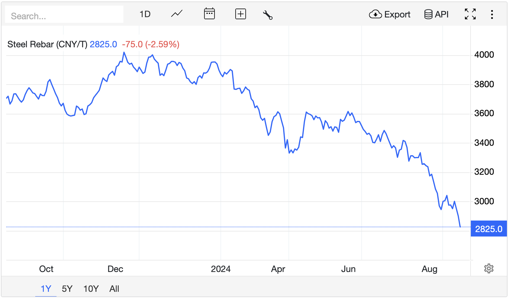 Giá thép giao tháng 9/2024 trên Sàn giao dịch Thượng Hải ghi nhận ở mức 2.825 nhân dân tệ/tấn, giảm 75 nhân dân tệ/tấn (tương đương giảm 2,59%) tại thời điểm khảo sát vào lúc 7h45 ngày 15/8 (theo giờ Việt Nam).
