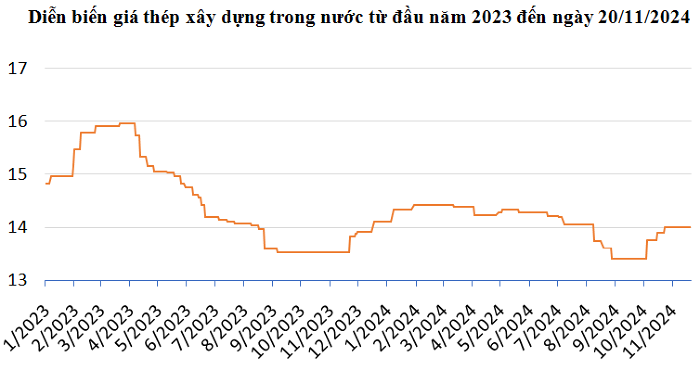Ở thị trường trong nước, theo tông trang SteelOnline.vn, giá thép CB240 và D10 CB300 không có nhiều thay đổi so với ngày hôm trước, giao dịch quanh mốc 14.000 đồng/kg.