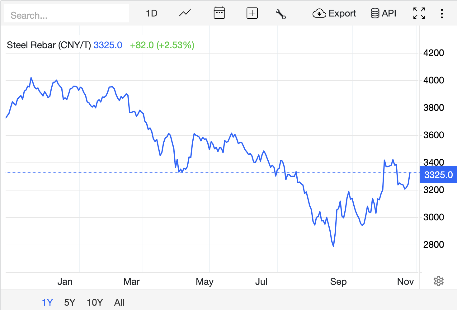 Trên sàn giao dịch Thượng Hải, giá thép thanh tăng 2,53% lên 3.325 CNY/tấn vào lúc 7h43 (giờ Việt Nam) ngày thứ Ba (29/10), kéo dài đà tăng sang phiên thứ 3 liên tiếp.
