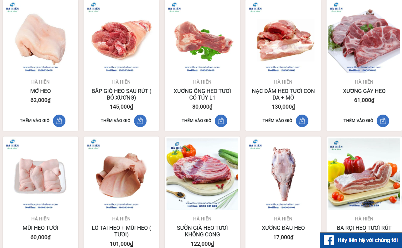 Giá thịt heo tại Công ty Thực phẩm Tươi sống Hà Hiền kéo dài đà đi ngang tại thời điểm khảo sát lúc 6h55. Hiện tại, các sản phẩm thịt heo được bán với giá trong khoảng 62.000 - 167.000 đồng/kg.