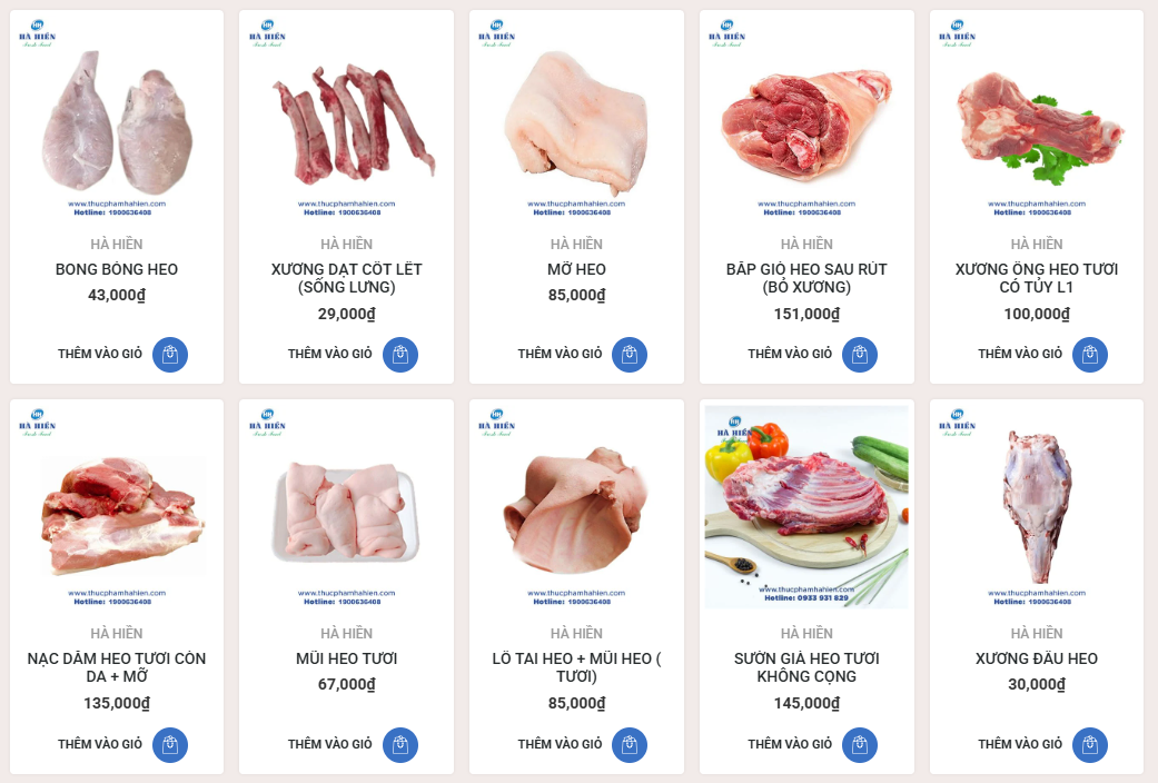 Trong đó, mỡ heo đang được niêm yết tại mức 85.000 đồng/kg, thấp nhất trong các sản phẩm được khảo sát. Tiếp đến là các loạt thịt nạc đùi heo, sườn già heo và thịt nạc vai heo với giá bán lần lượt là 125.000, 128.000 và 130.000 đồng/kg.