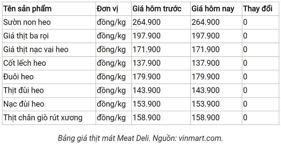 Ghi nhận hôm nay (6/4), giá thịt heo mát Meat Deli từ trang vinmart.com tiếp tục không xuất hiện điều chỉnh.