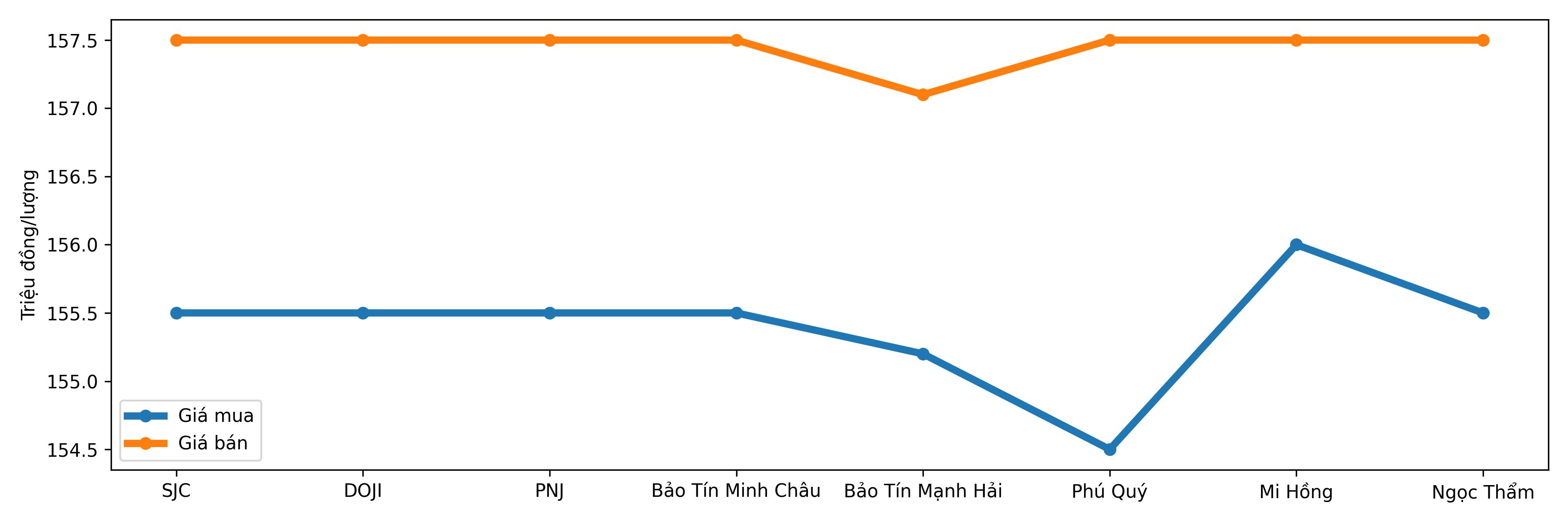 Tuy nhiên, trong hơn hai giờ giao dịch, giá giảm nhẹ 100 nghìn đồng mỗi lượng ở cả hai chiều. Đến cuối phiên sáng, giá tiếp tục tăng thêm 200 nghìn đồng mỗi lượng, đưa mức giao dịch lên 152,6 triệu đồng mua vào và 155,6 triệu đồng bán ra mỗi lượng.