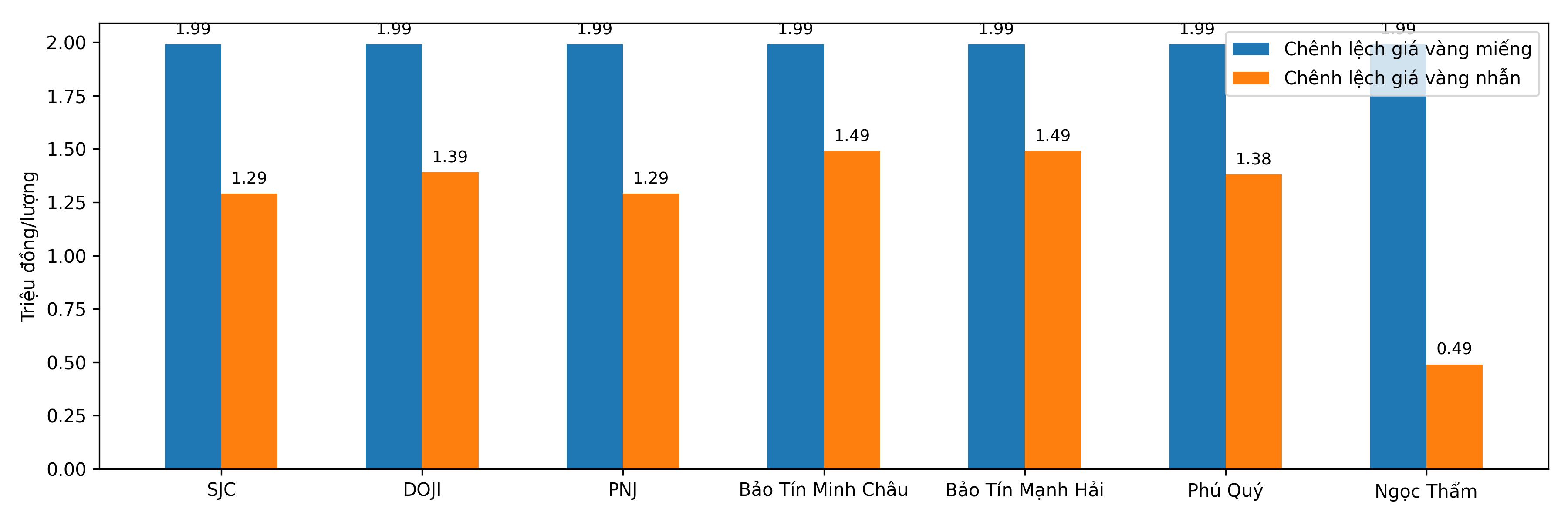 Chênh lệch giá vàng trong nước và giá vàng thế giới phiên 22/12.