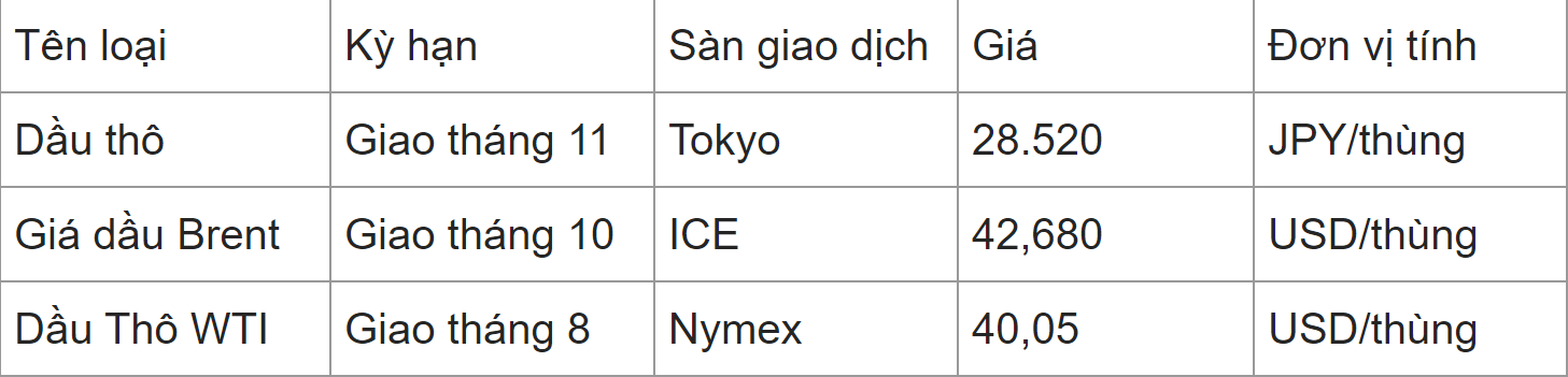 Giá dầu thô sàn Tokyo (giao tháng 11): 28.420 JPY/thùng - giảm 530 JPY so với phiên ngày hôm qua.