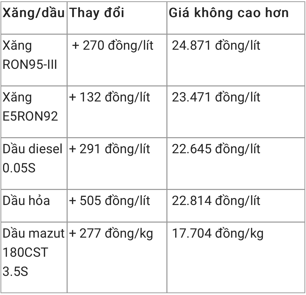 Theo đó, sau khi thực hiện việc trích lập và chi sử dụng quỹ Bình ổn, giá bán các mặt hàng xăng dầu tiêu dùng phổ biến trên thị trường như sau:
