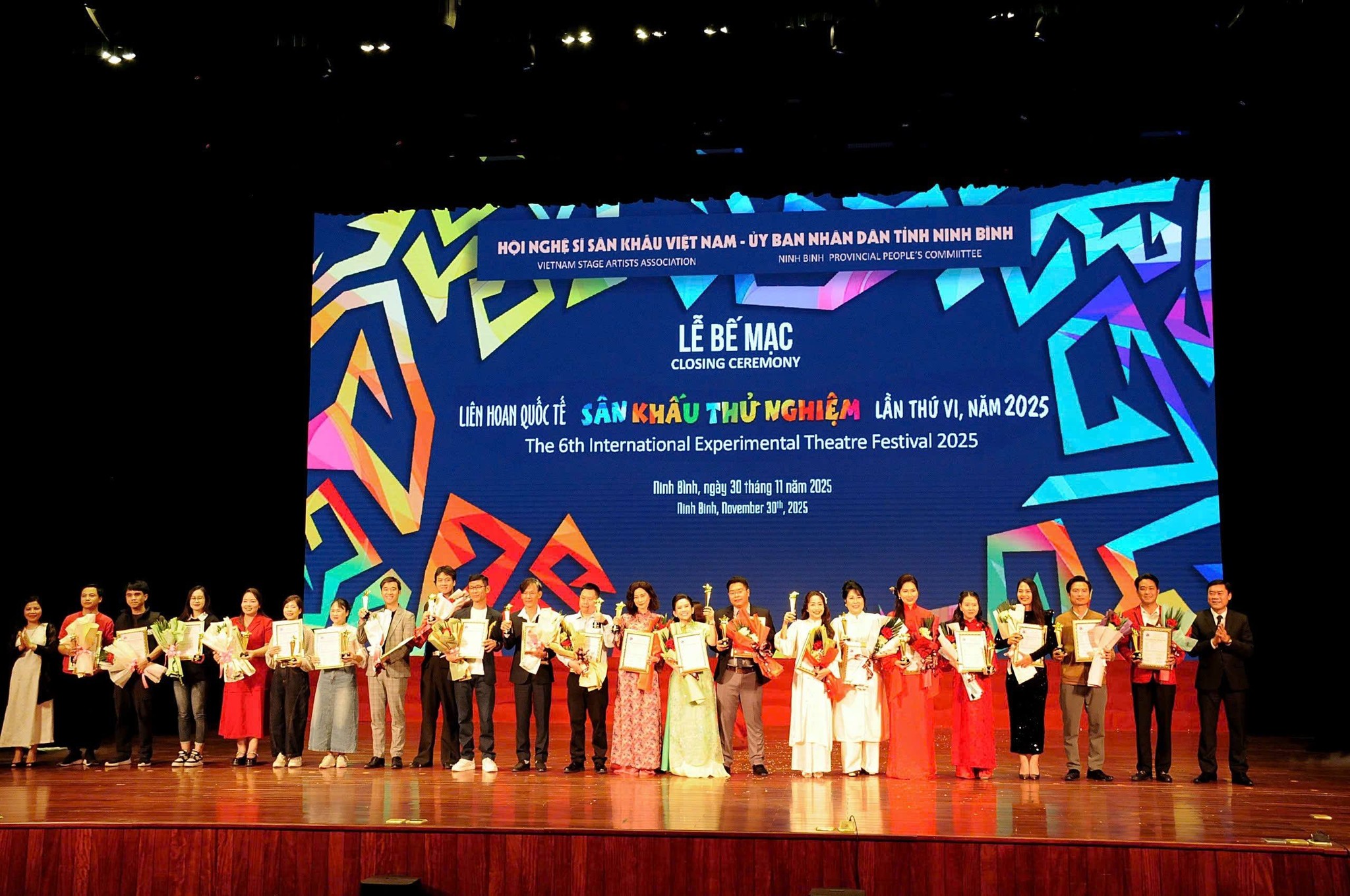 Liên hoan quốc tế sân khấu thử nghiệm lần thứ VI - 2025 khép lại tối 30/11 tại Nhà hát Phạm Thị Trân (Ninh Bình) sau 15 ngày diễn ra sôi động tại Hà Nội, Hải Phòng, Ninh Bình và TP Hồ Chí Minh. Đây được xem là kỳ liên hoan có quy mô lớn nhất từ trước đến nay, với sự tham gia của gần 30 đoàn nghệ thuật chuyên nghiệp trong và ngoài nước, cùng hơn 1.000 nghệ sĩ biểu diễn. 19 vở diễn của Việt Nam và 8 tác phẩm quốc tế đã tạo nên một không gian nghệ thuật đa sắc, nơi các phương thức biểu đạt mới được thử nghiệm, các hình thức kết hợp táo bạo được trình diễn, và nơi các biểu tượng văn hoá truyền thống được “đặt vào lò luyện” của sáng tạo đương đại.