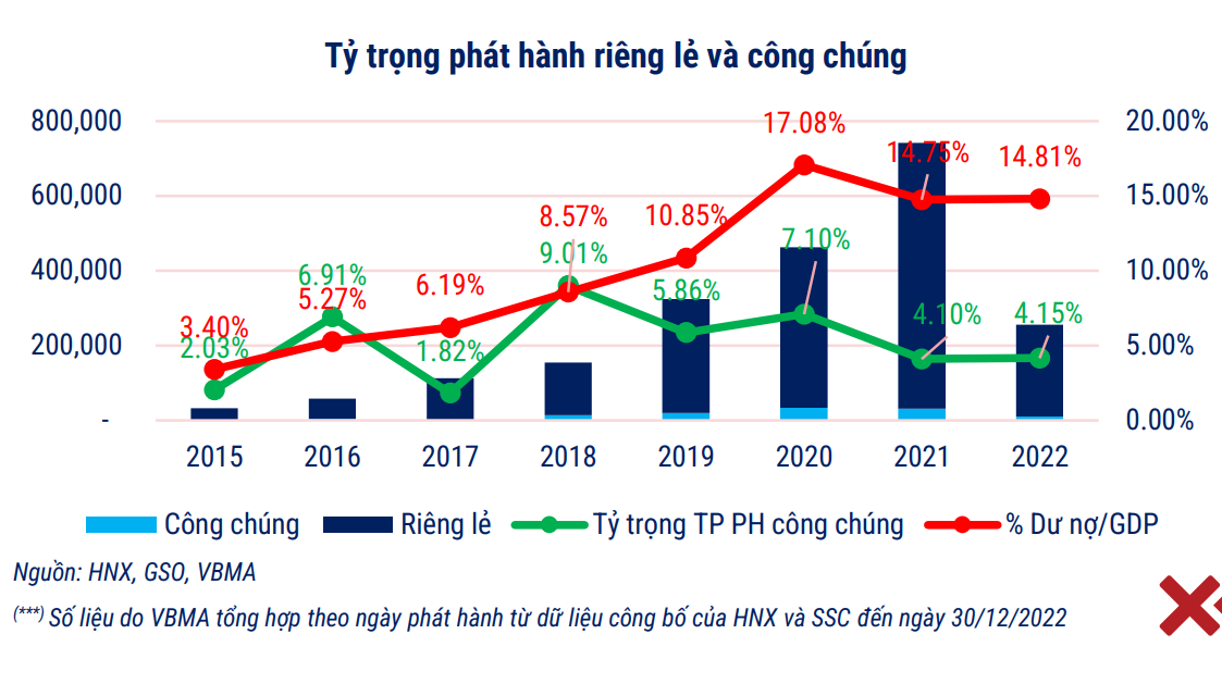 Thị trường TPDN bắt đầu phát triển mạnh mẽ từ 2019 đến những tháng đầu năm 2022 và đã nhanh chóng đạt được quy mô ngót nghét 1,2 triệu tỷ đồng, theo số dư đến 31/12/2022.