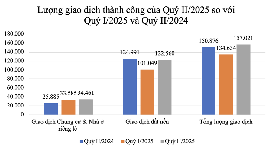 Tại báo cáo về nhà ở và thị trường bất động sản quý 2/2025, công bố ngày 28/7/2025, Bộ Xây dựng cho biết lượng giao dịch nhà ở đạt khoảng 157.021 giao dịch, tăng 16,6% so với quý trước. Trong đó, giao dịch căn hộ chung cư, nhà ở riêng lẻ tăng 2,61%; lượng giao dịch đất nền tăng 21,3%…