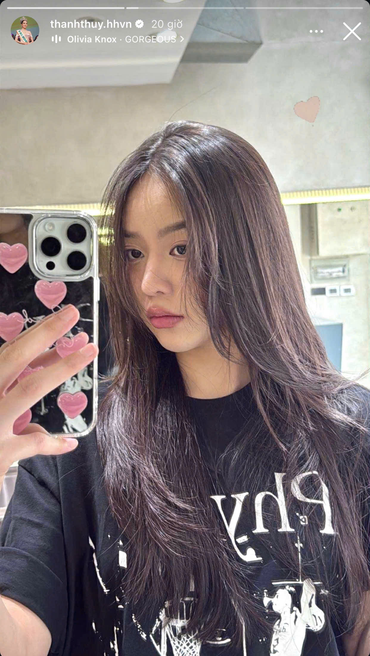 "Em không nghĩ mình sẽ thi hoa hậu nên đã thử nhuộm tóc bạch kim, dẫn đến tóc hư tổn dù trước đây tóc rất dài và khỏe. Để khắc phục, em quyết định cắt ngắn tạo kiểu mullet. Đột nhiên em nhận được thông tin tổ chức cuộc thi Hoa Hậu Việt Nam 2024, em đăng ký tham gia và nối tóc", Thanh Thủy chia sẻ.