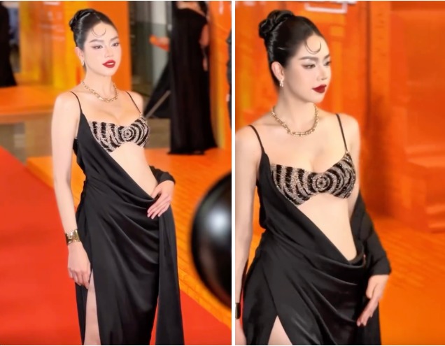 Xuất hiện trên thảm đỏ sự kiện tháng 5/2025, Miss International 2024 diện trang phục táo bạo với điểm nhấn chính là kiểu tóc búi kèm mái xoăn cổ điển bị nhận xét già chát.