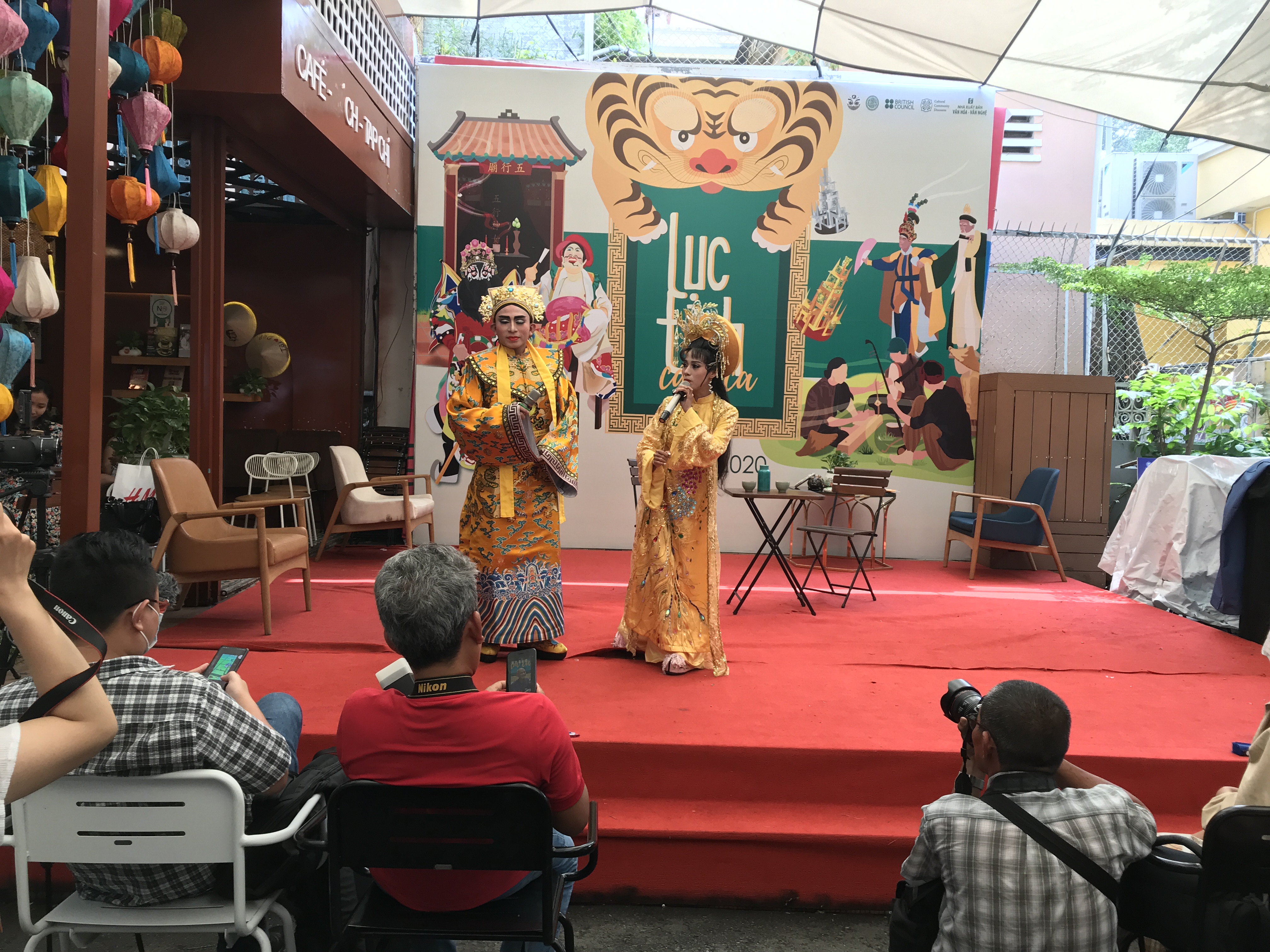 Khán giả tìm hiểu về bộ sách Lục Tỉnh Cầm Ca tại buổi giới thiệu. Ảnh N.H