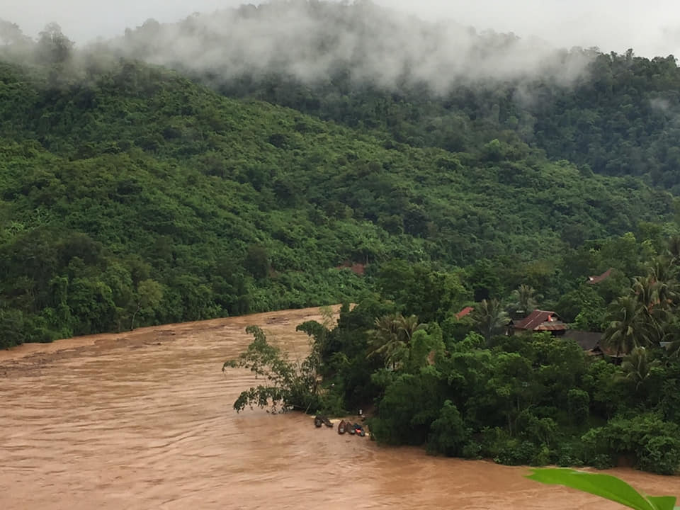 Nước sông Nậm Nơn dâng cao đe dọa sự an toàn của nhiều nhà dân