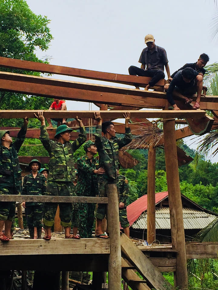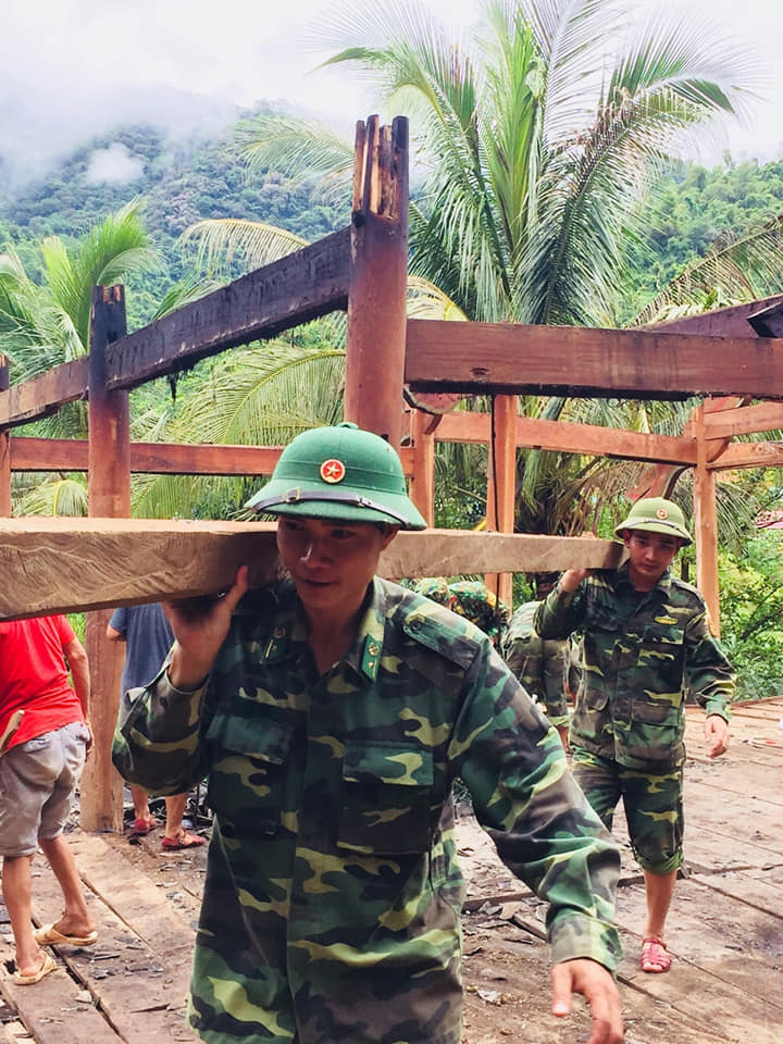 Bộ đội giúp dân di dời nhà cửa và tài sản đến nơi an toàn
