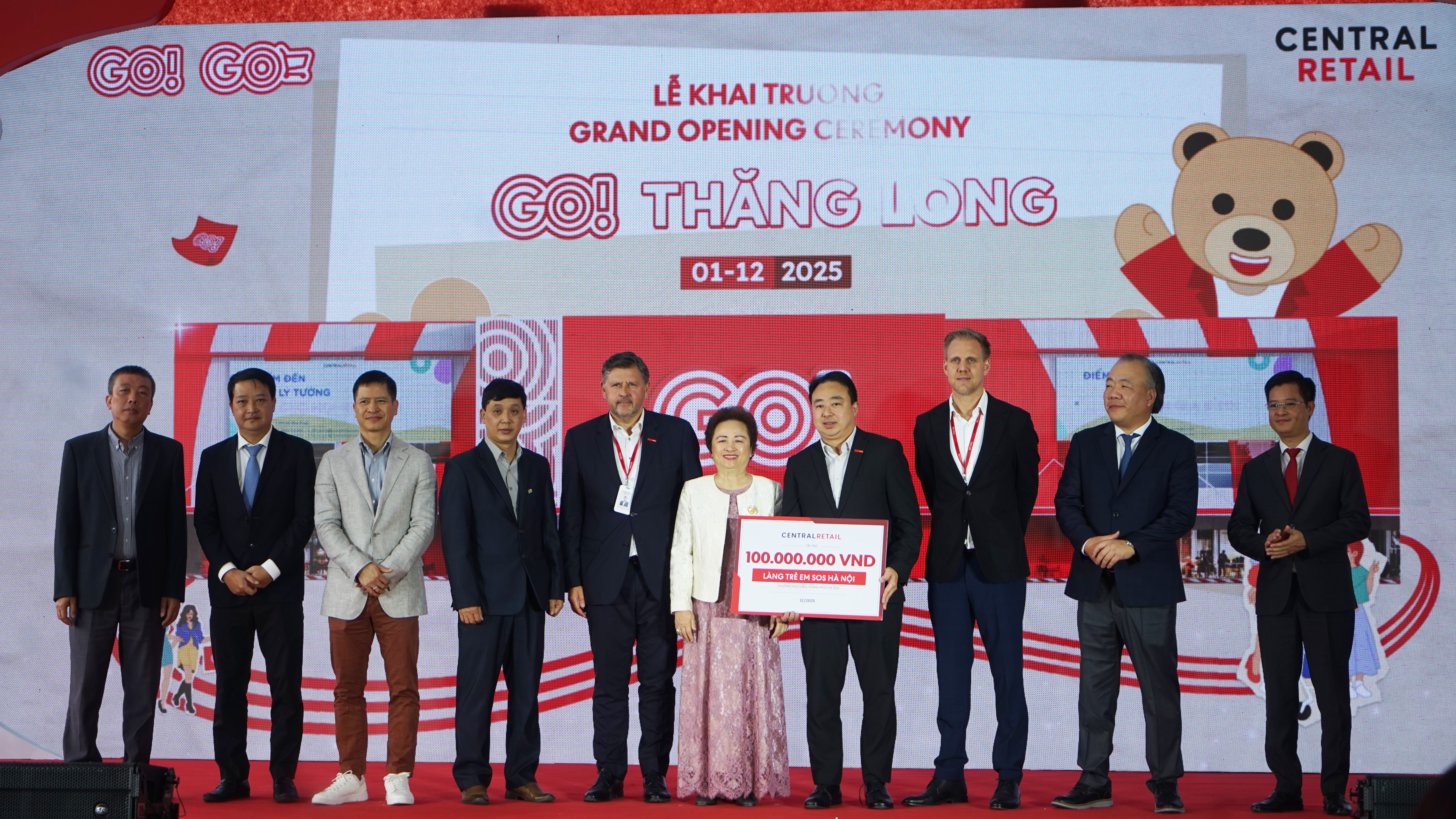 Nhân dịp khai trương, nhằm đóng góp cho cộng đồng địa phương nơi GO! Thăng Long đang hoạt động, tập đoàn Central Retail Việt Nam đã công bố khoản tài trợ hàng nhu yếu phẩm trị giá 100 triệu đồng cho Làng trẻ em SOS Hà Nội.
