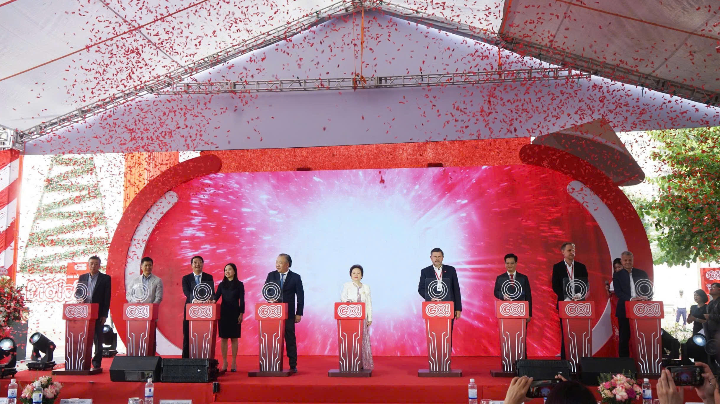 Các đại biểu ấn nút khai trương Trung tâm thương mại GO! Thăng Long