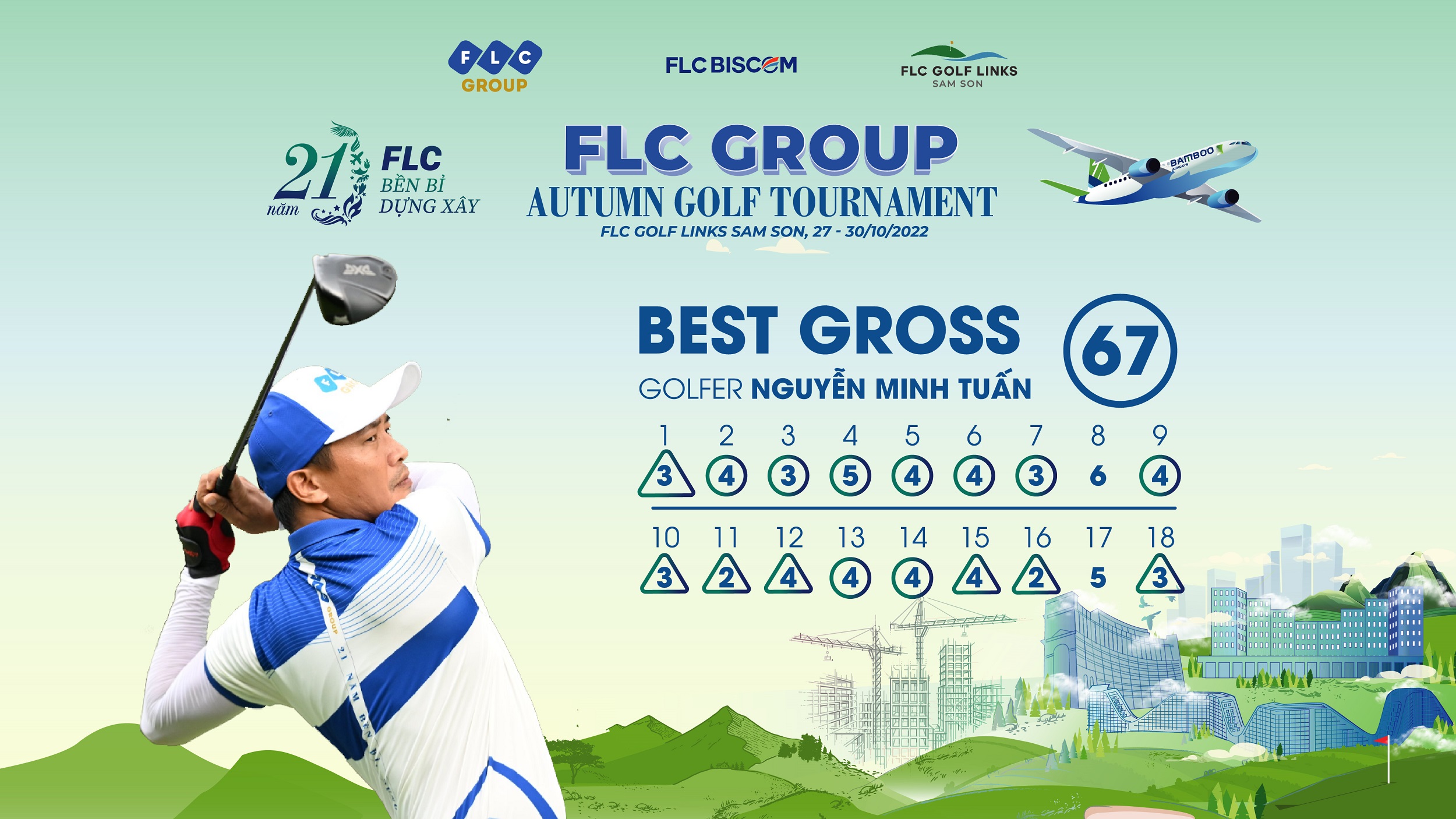 Sau 04 ngày thi đấu sôi nổi, với thành tích 67 gậy, trong đó có 07 birdie, Golfer Nguyễn Minh Tuấn đã vượt qua gần 1000 golfer tham dự giải, xác lập 02 kỷ lục mới và lên ngôi vô địch tại giải FLC Group Autumn Golf Tournament.