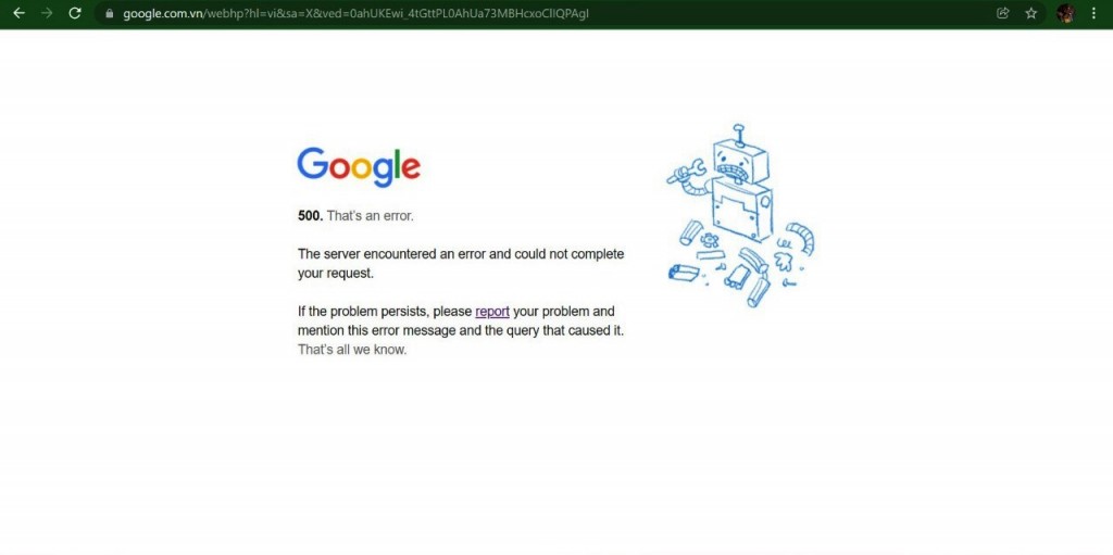 Nhiều người dùng cho biết, công cụ tìm kiếm Google không thể hiển thị kết quả khi người dùng tìm kiếm từ khóa. Google hiển thị lỗi "502" hoặc "500" khi người dùng tìm kiếm và yêu cầu đợi 30 giây để tải lại trang.