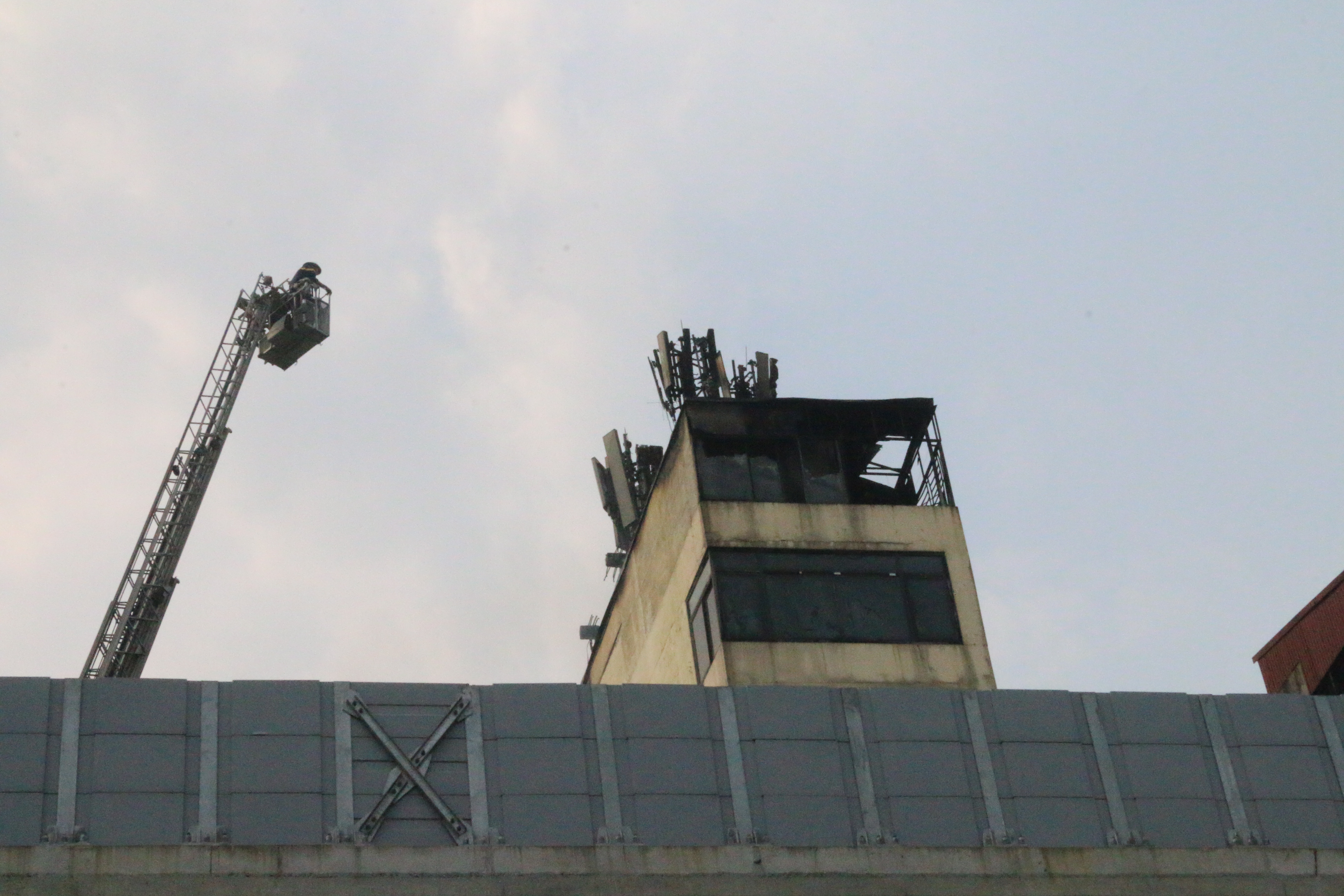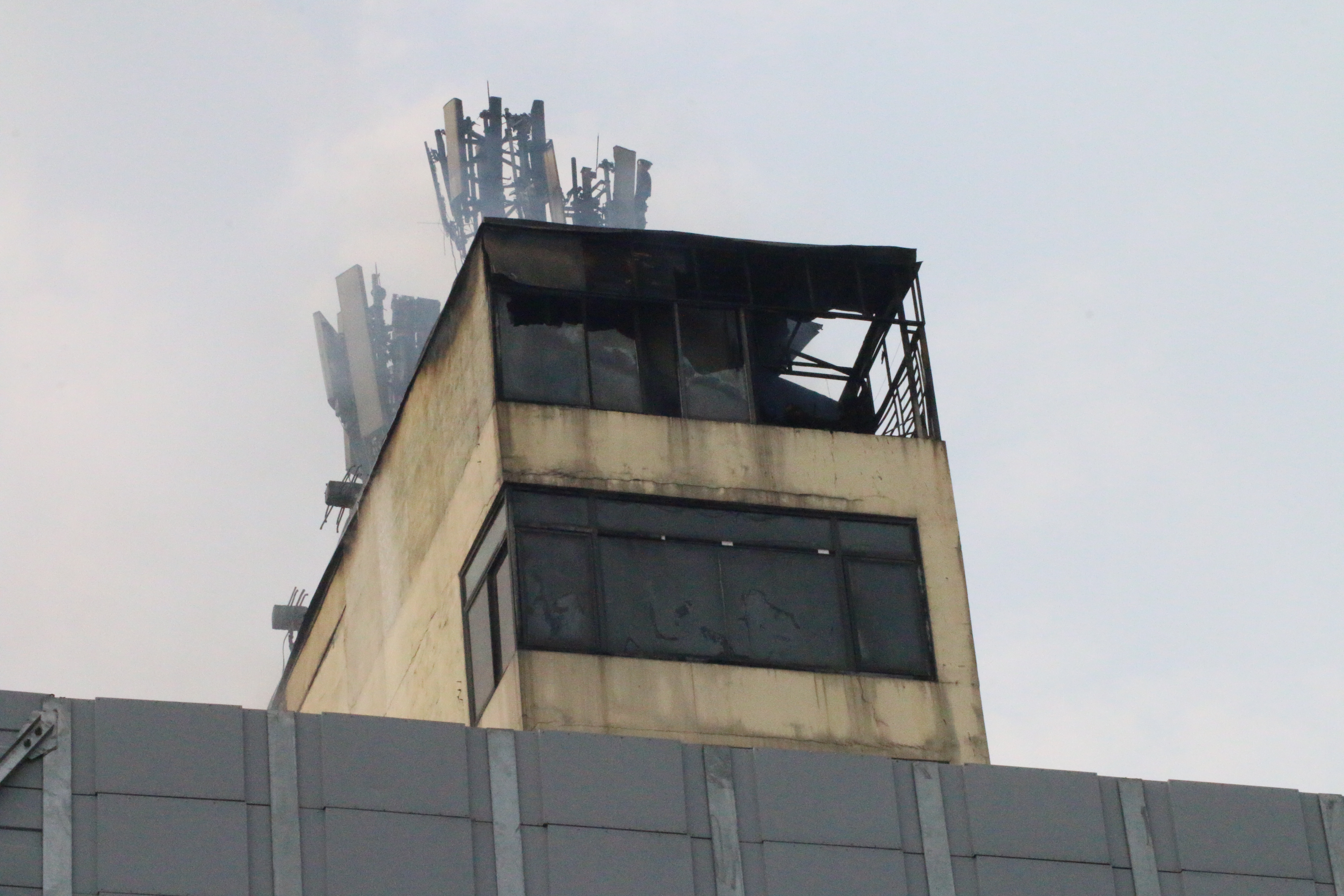 | Trạm BTS trên tầng thượng bị thiêu rụi bởi hỏa hoạn. |