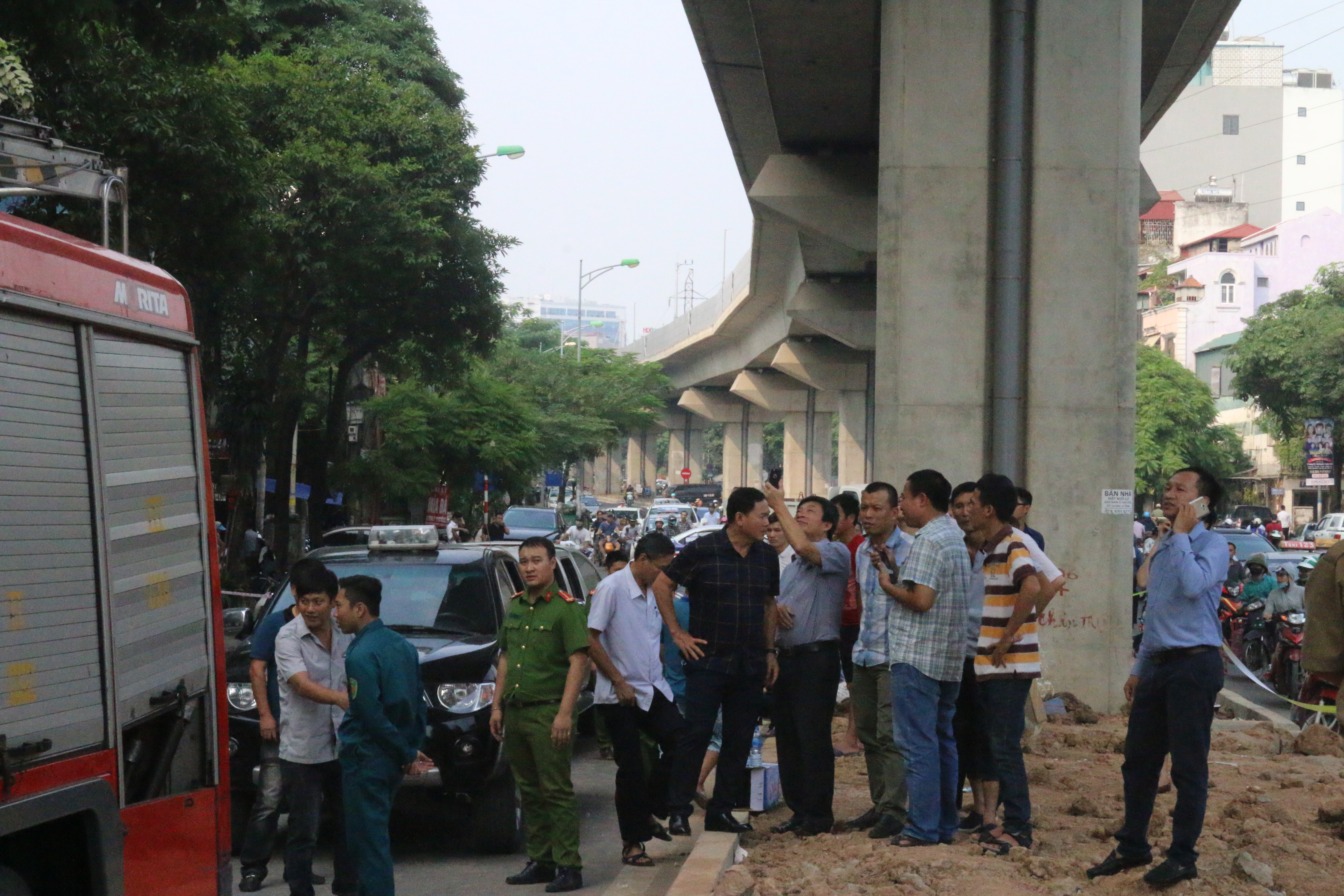 | Nhiều người đi đường hiếu kỳ đứng lại xem khiến giao thông trở nên ách tắc. |