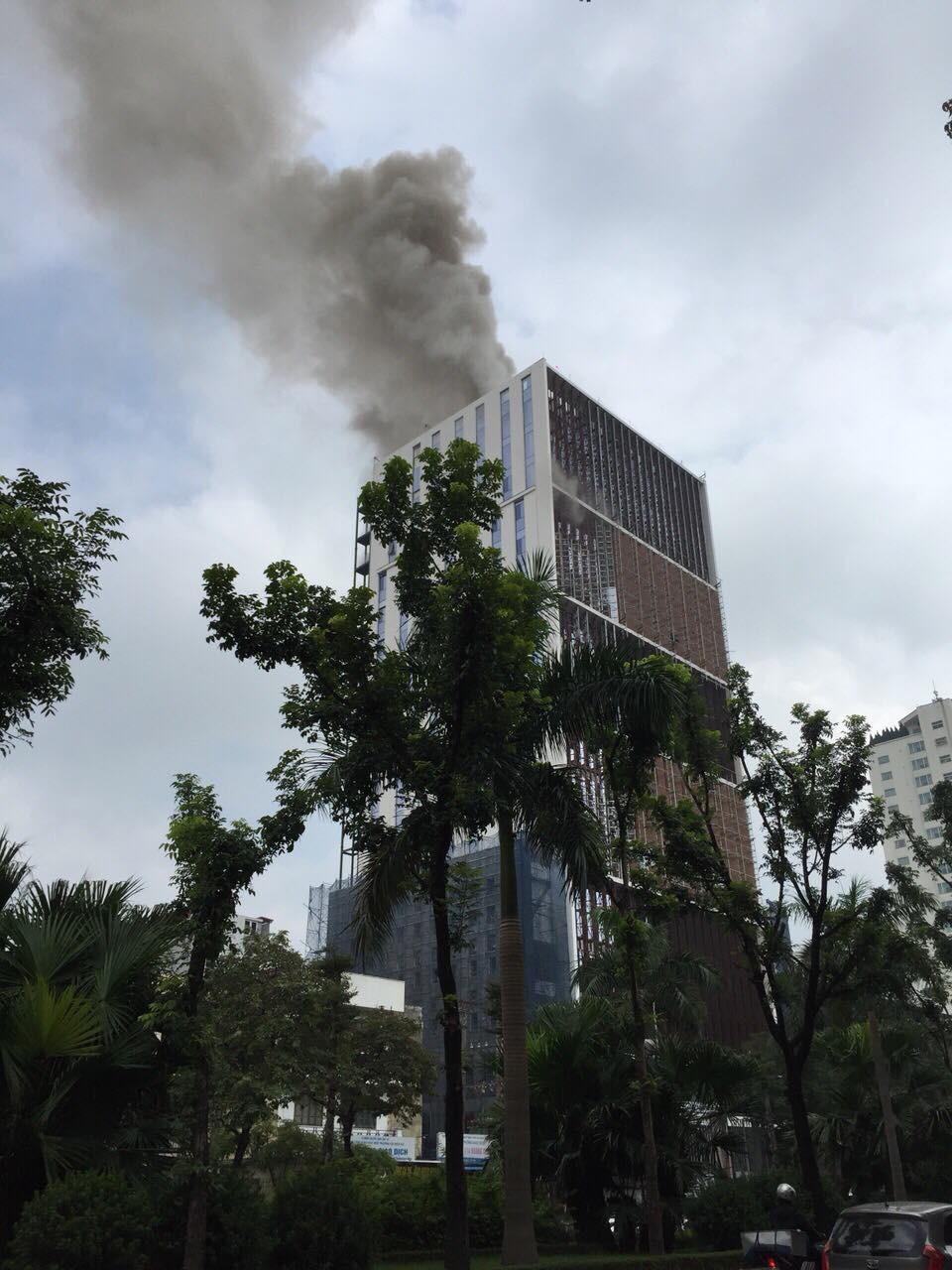 Tại hiện trường, cột khói nghi ngút bốc lên hàng chục mét tại những tầng cao nhất của tòa nhà. Sau khi đám cháy xảy ra, công nhân làm việc tại công trường đã được sơ tán, 5 xe cứu hỏa cùng nhiều chiến sĩ PCCC đã có mặt khống chế vụ hỏa hoạn.