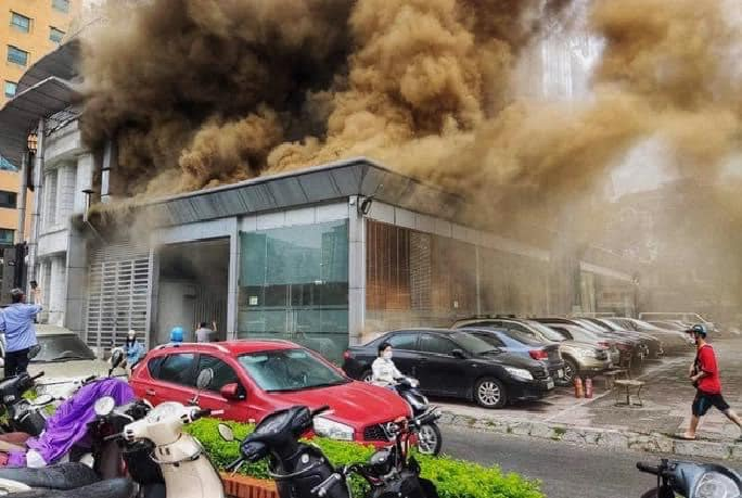 Vụ cháy xảy ra tại nhà hàng thuộc toà nhà Vicostone 167 Hoàng Ngân (Hà Nội). Khói bốc lên cao trăm mét khiến người dân hoảng loạn.