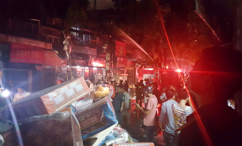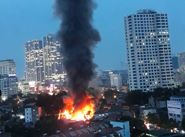 Theo thông tin ban đầu, vào khoảng 18h, người dân sống ở khu vực Đê La Thành gần bệnh viện nhi Trung Ương phát hiện ngọn lửa rồi nhanh chóng cháy lan sang các nhà bên cạnh.