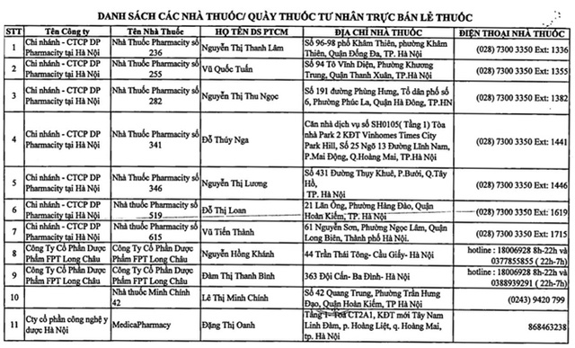 14 điểm bán thuốc của Công ty cổ phần Dược phẩm và Thiết bị y tế Hà Nội.