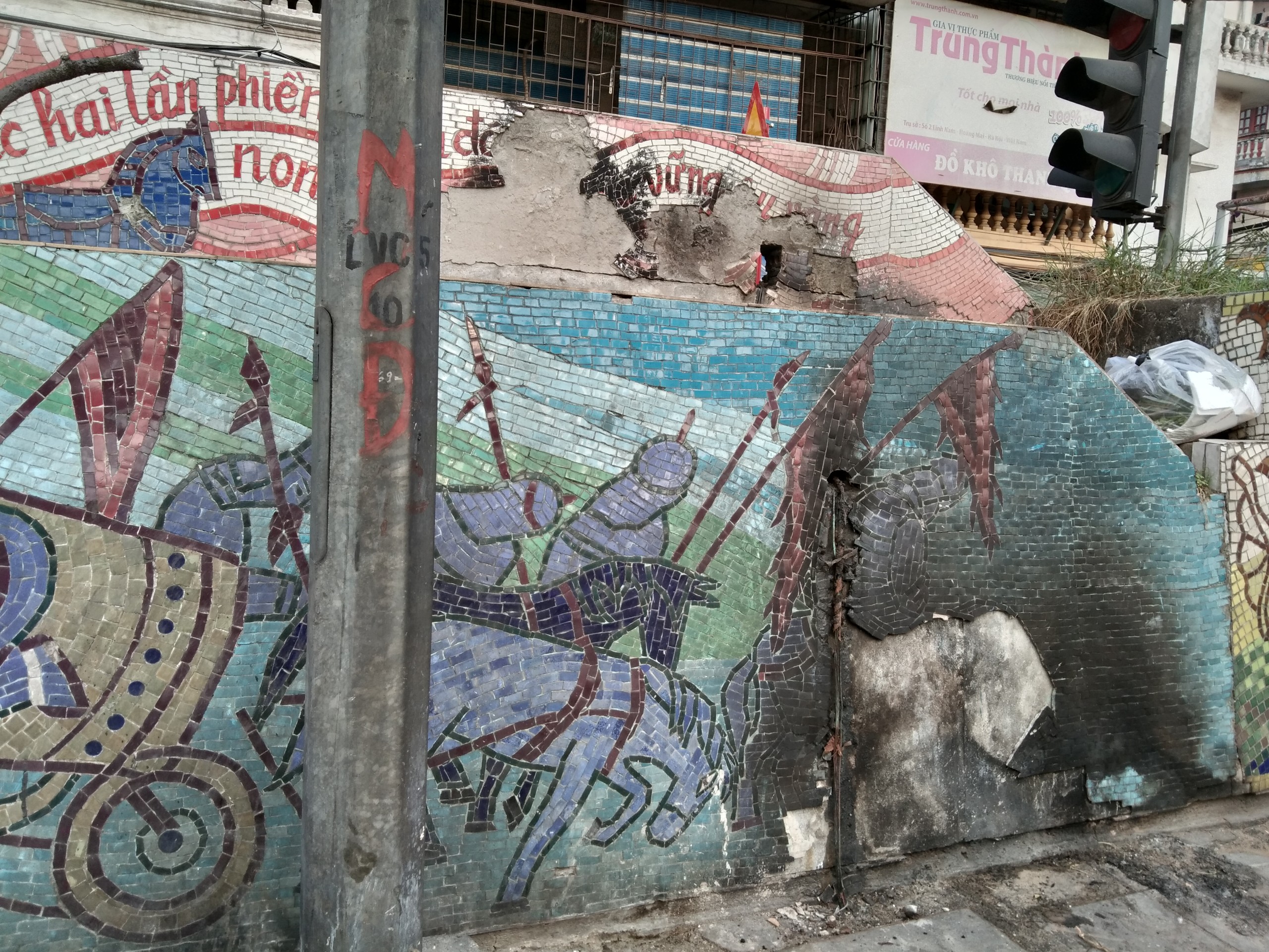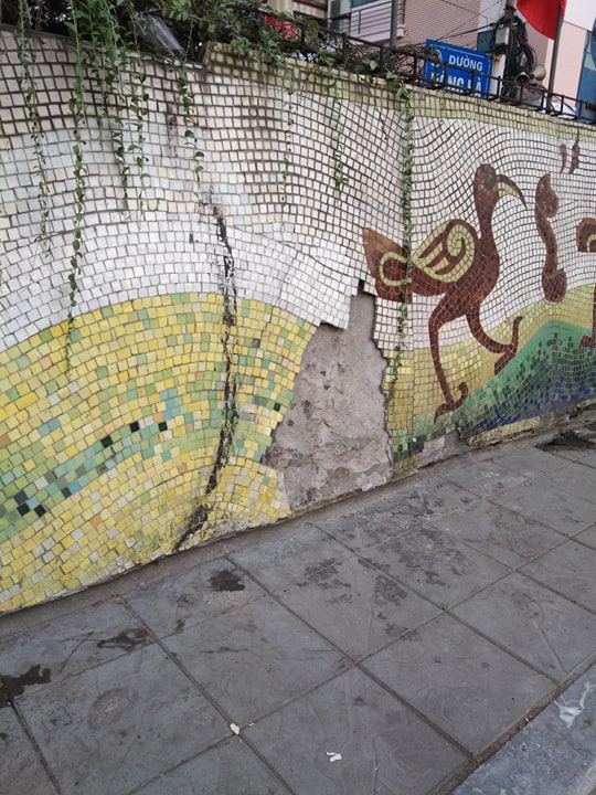 Theo tìm hiểu, các vết gốm bị nứt, phồng rộp hay bị bong ra do sự thiếu ý thức của một số bộ phận người dân. Họ đổ rác, đốt lửa khiến cho lớp gốm không duy trì được độ bám cũng như làm hỏng màu sắc gốm. Tuy nhiên, một phần cũng phải kể đến sự khắc nghiệt của thời tiết, độ rung chuyển của giao thông,...khiến cho công trình kỷ lục này bị hư hại.