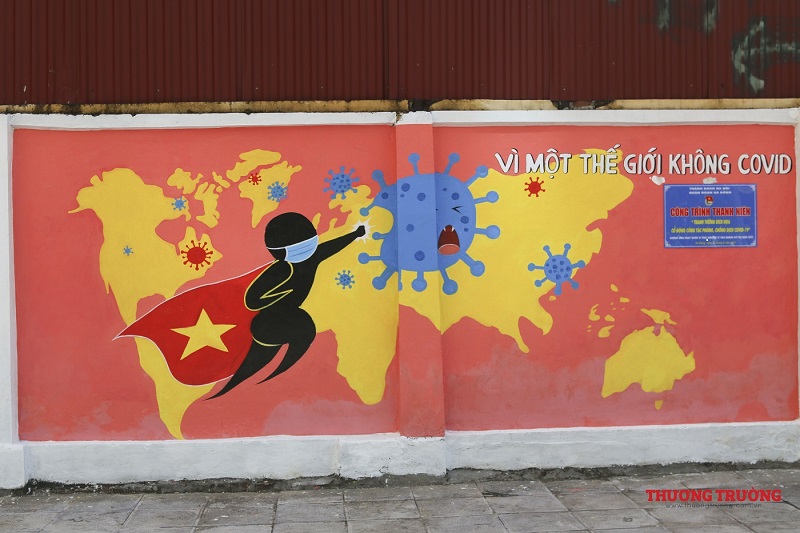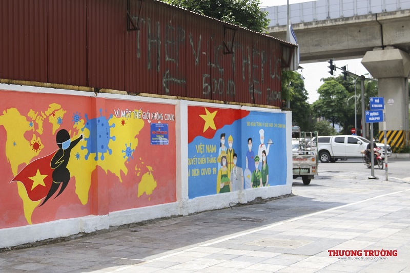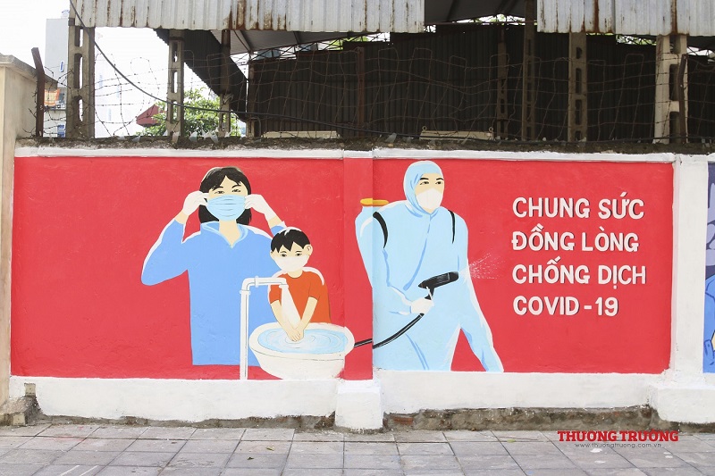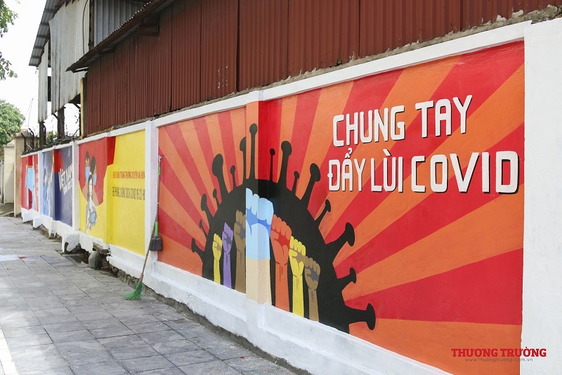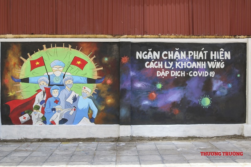 “Việt Nam ơi đánh bay Covid", "Chung sức đồng lòng chống dịch Covid-19" hay "Cảm ơn những chiến sĩ áo trắng",.... Đây chỉ là ba trong số rất nhiều thông điệp tuyên truyền về phòng chống đại dịch trên bức tường dài gần 100m. Ngay khi hoàn thành, công trình đã thu hút được sụ chú ý của đông đảo người dân .