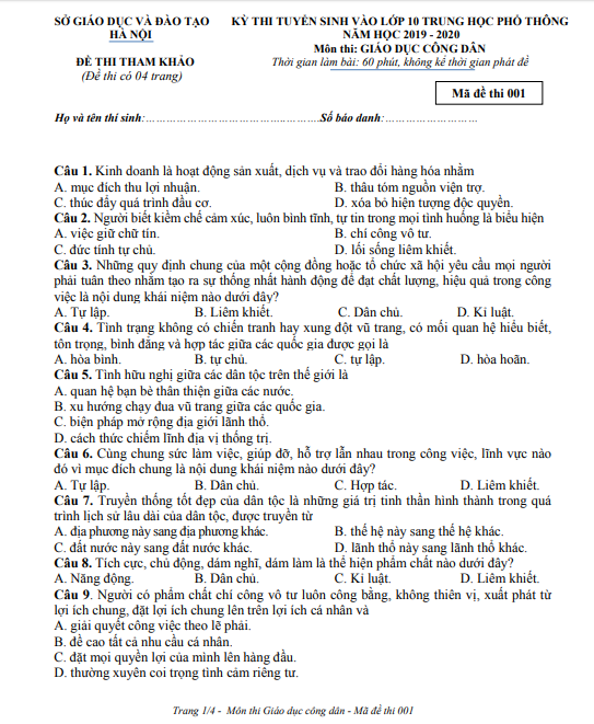 Xem đề tham khảo môn Giáo dục Công dân TẠI ĐÂY