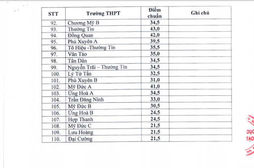 Tối 29/6, Sở Giáo dục và Đào tạo Hà Nội công bố điểm chuẩn vào lớp 10 của 110 trường THPT công lập.