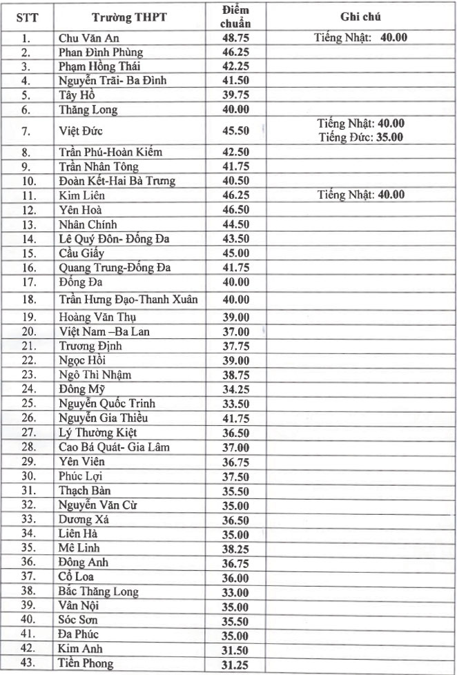| | Điểm chuẩn vào lớp 10 công lập tại Hà Nội |