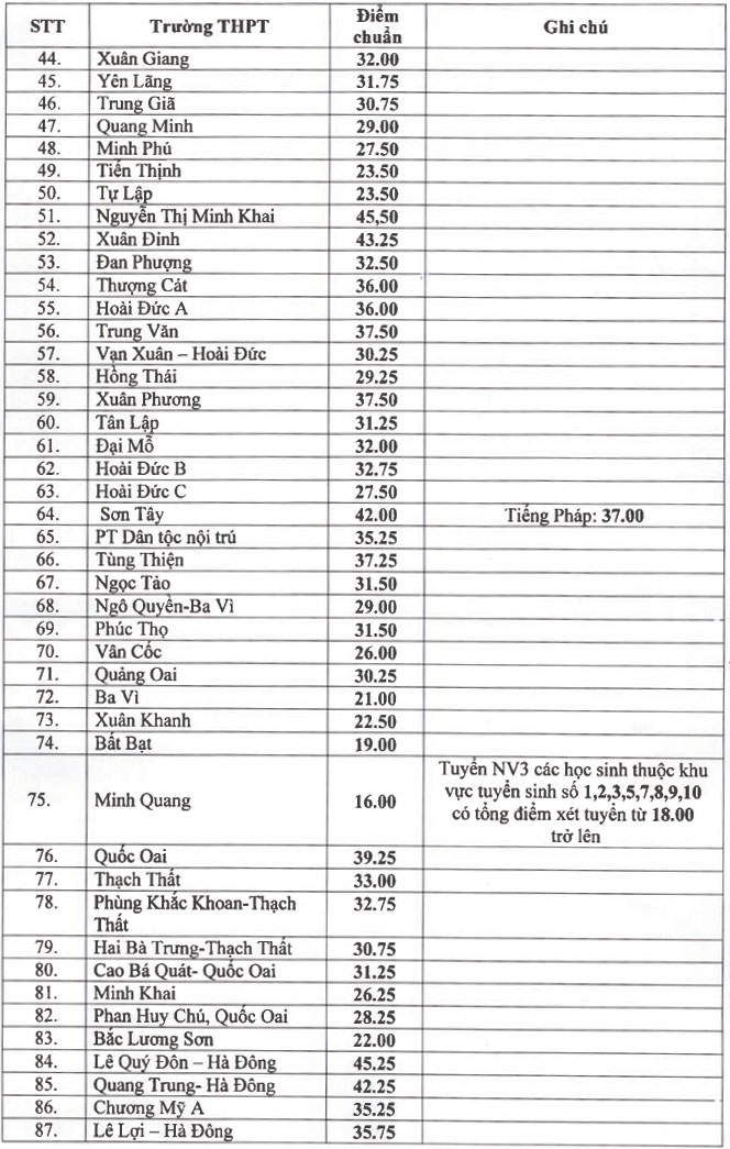 14 giờ ngày 24/6, nhà trường thông báo kết quả những học sinh trúng tuyển nguyện vọng 3 vào trường.