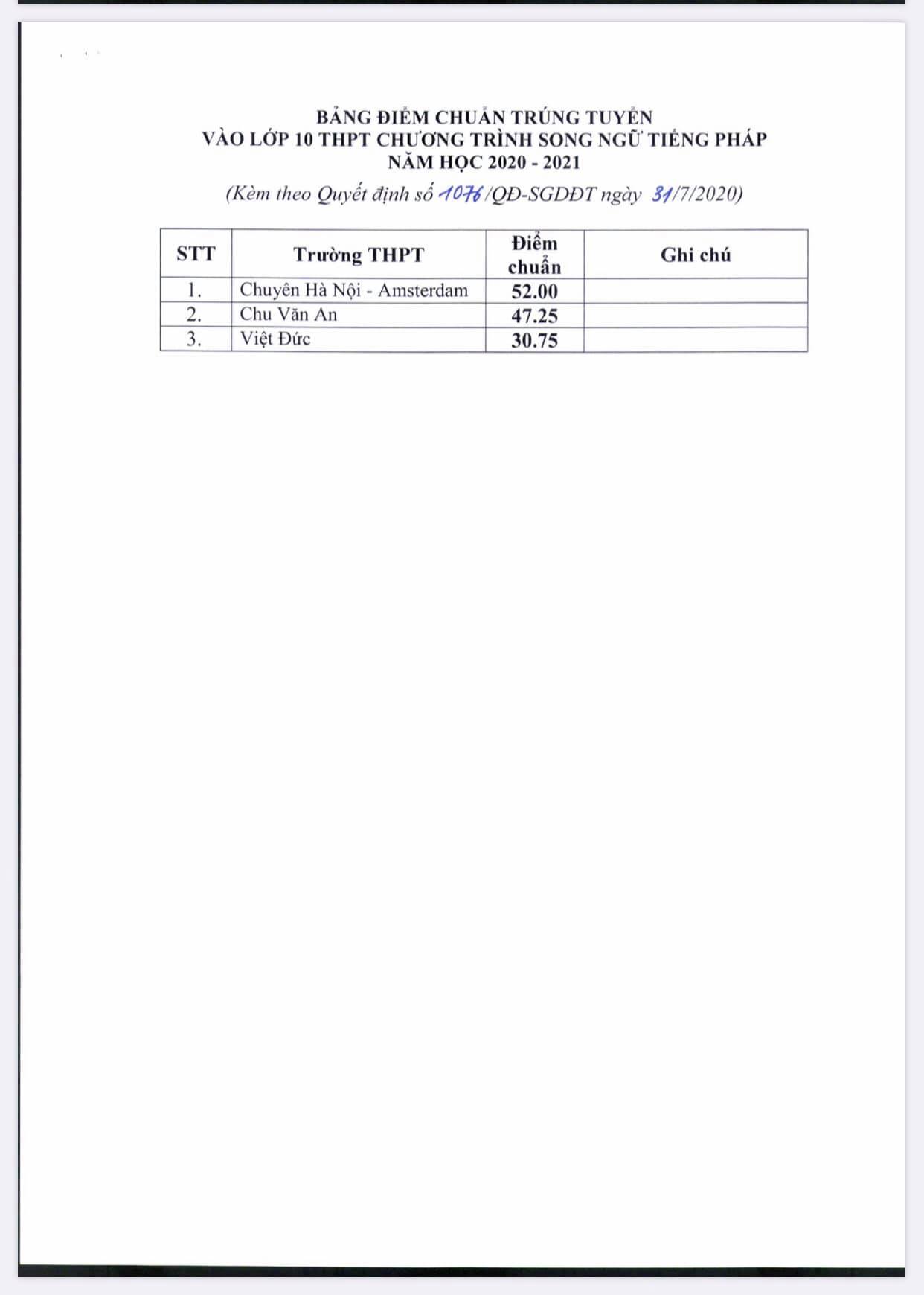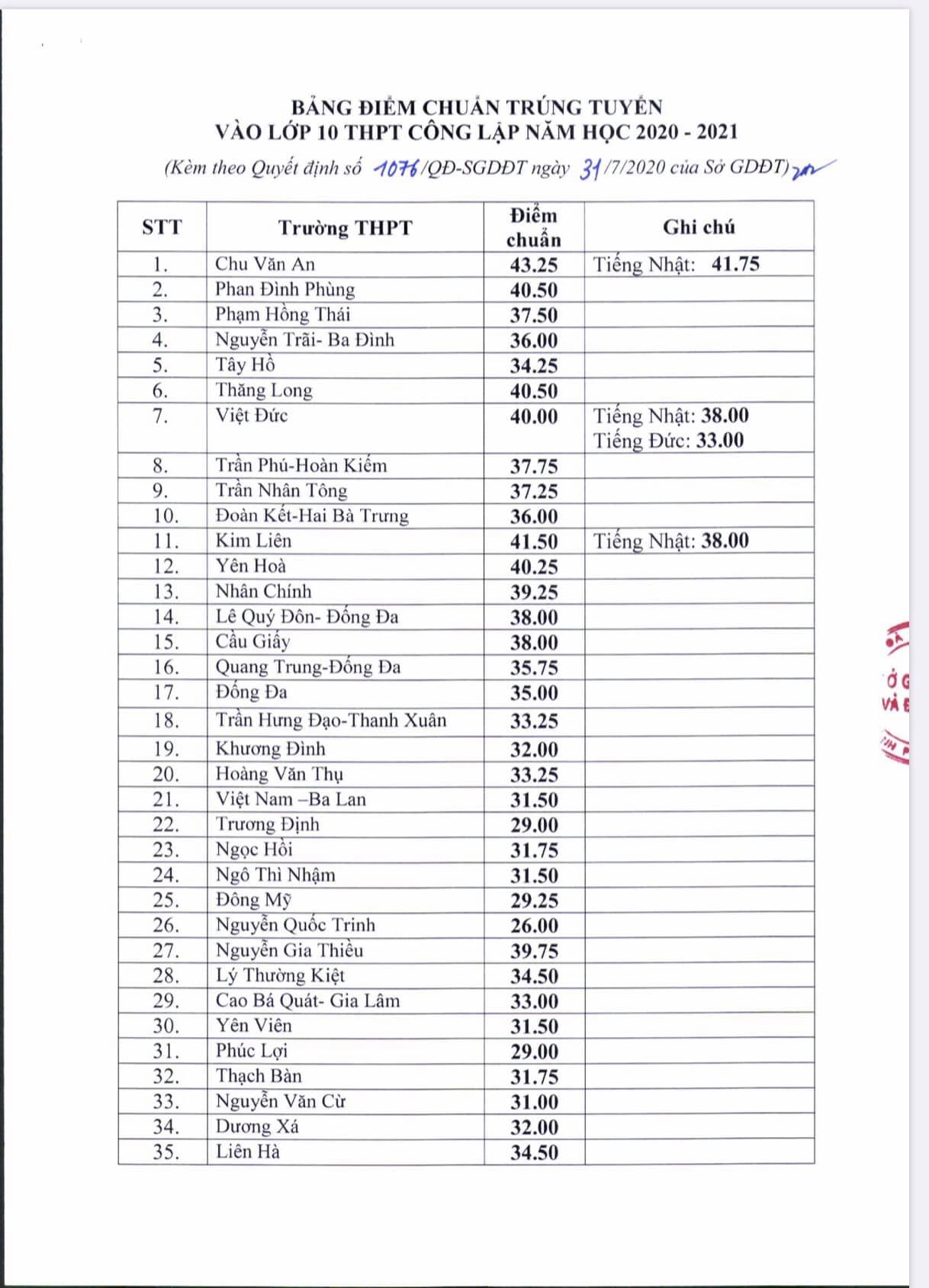 Ngày 31/7, lãnh đạo Sở GDĐT Hà Nội đã ký quyết định công nhận điểm chuẩn và công bố điểm chuẩn vào lớp 10 đến thí sinh.