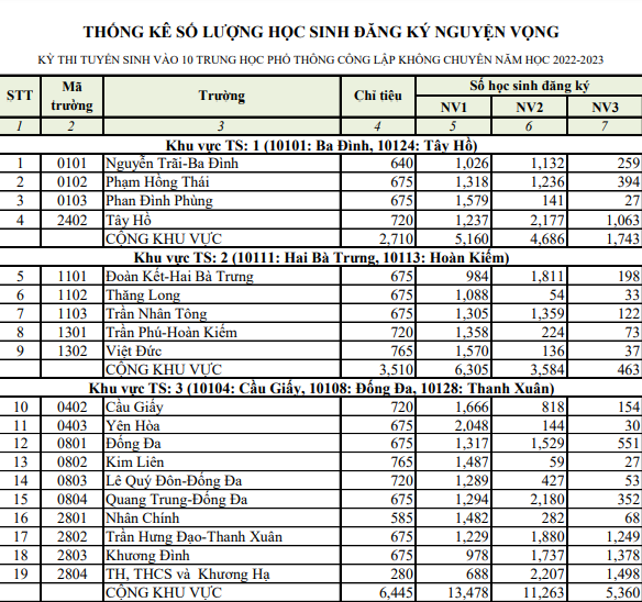 Năm nay, thành phố vẫn chia thành 12 khu vực tuyển sinh. Theo thống kê từ Sở GD&ĐT Hà Nội, có tổng cộng 130.000 thí sinh sẽ tham gia vào mùa thi vào lớp 10 năm nay.