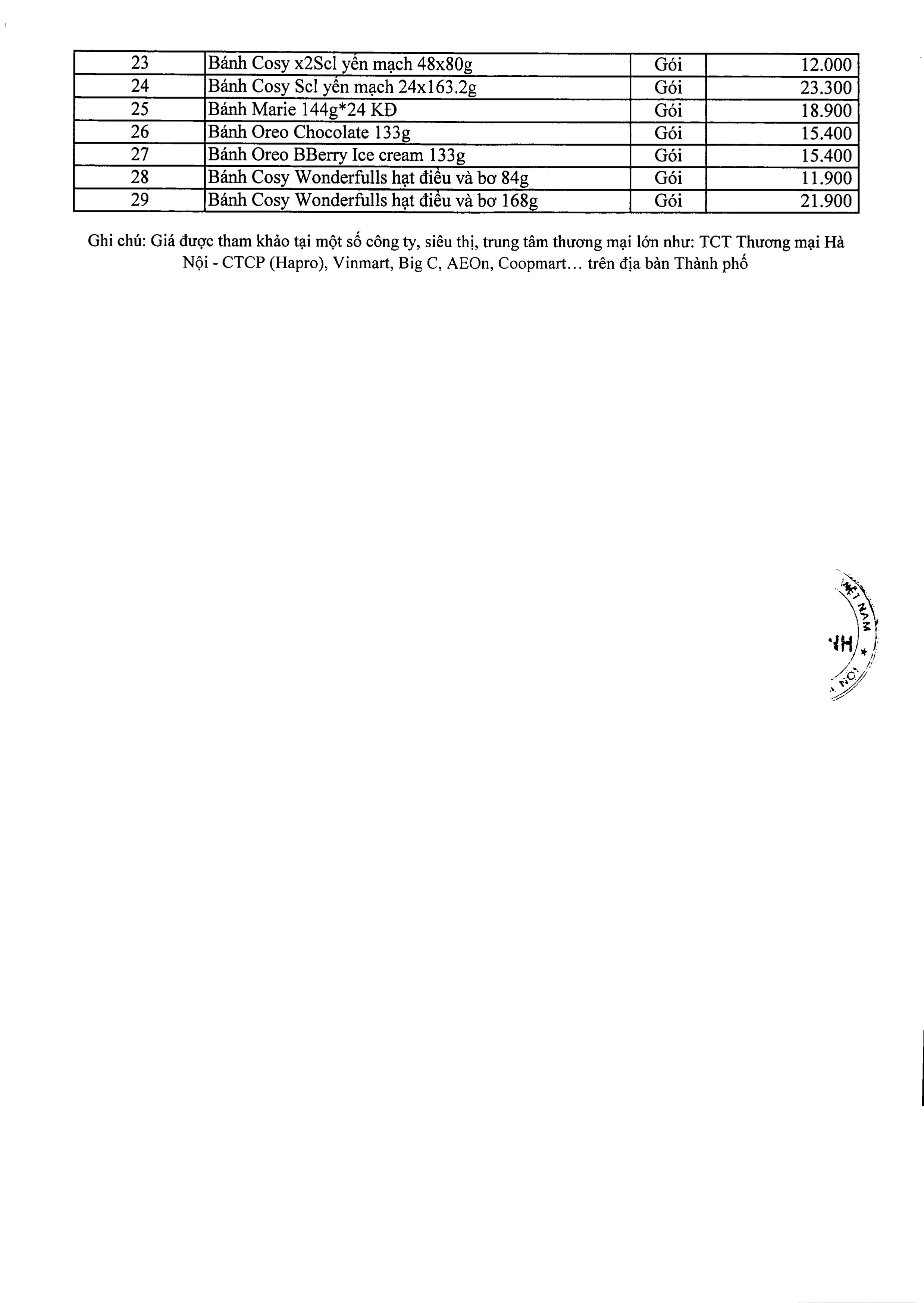 Sở Tài chính Hà Nội cho biết, giá các mặt hàng niêm yết được tham khảo tại một số công ty, siêu thị, trung tâm thương mại lớn trên địa bàn thành phố như: Tổng công ty Thương mại Hà Nội - CTCP (Hapro), Vinmart, Big C, AEOn, Coopmart…
