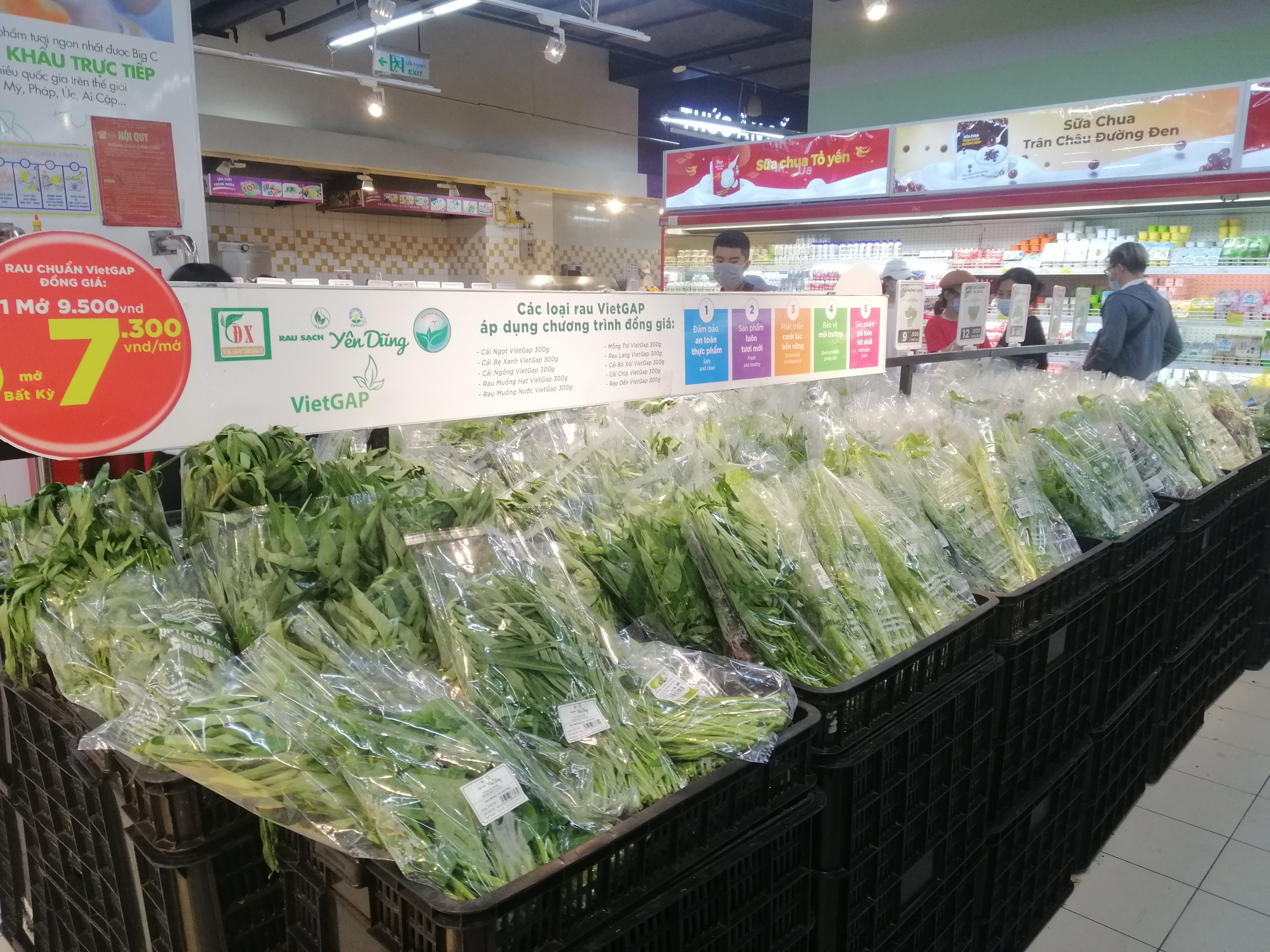 Số lượng rau của quả ở siêu thị BigC Hà Đông được xếp lên kệ rất nhiều