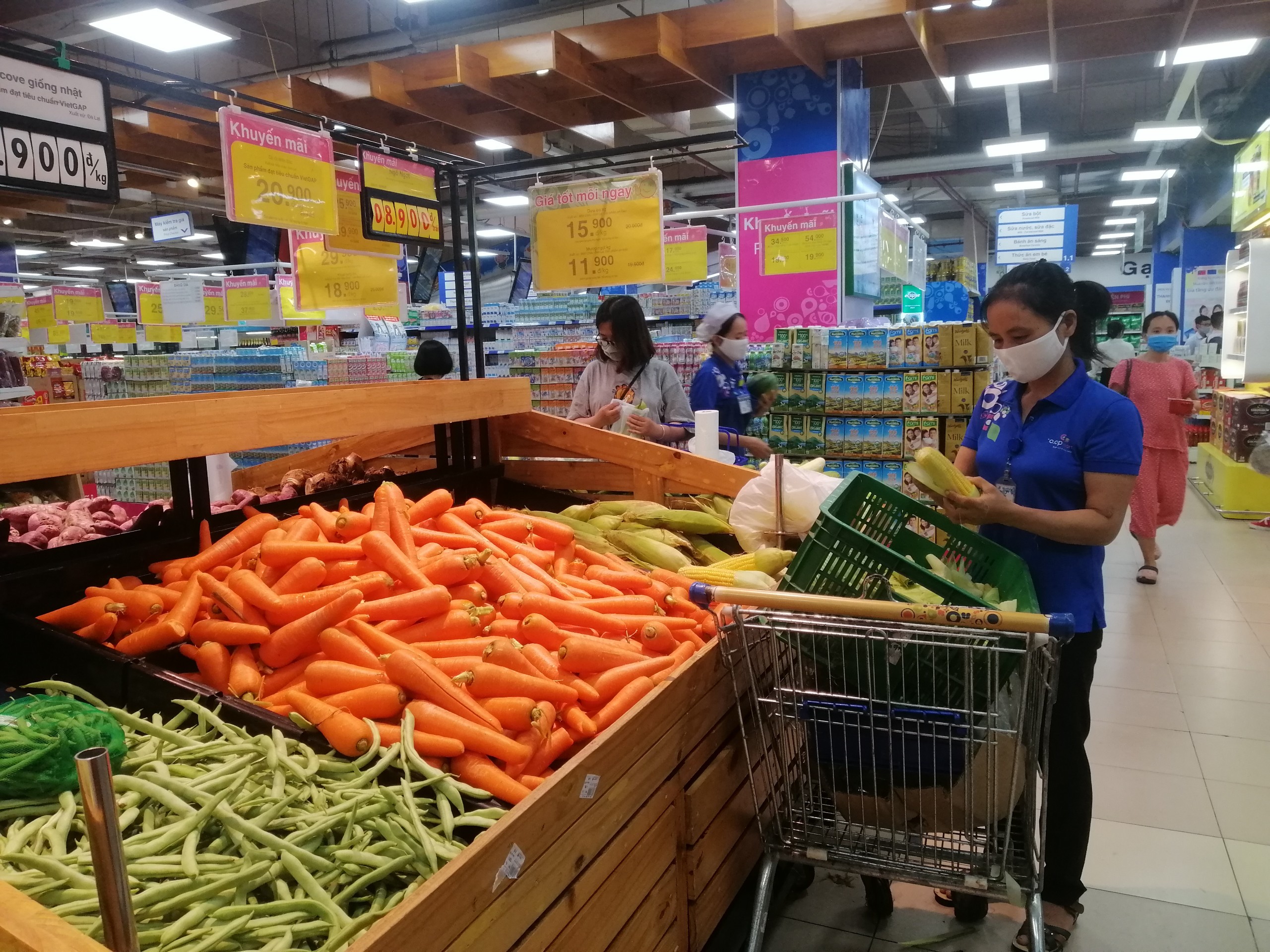 Tại siêu thị Coopmart Hà Đông nhân viên liên tục xếp hàng hóa lên kệ