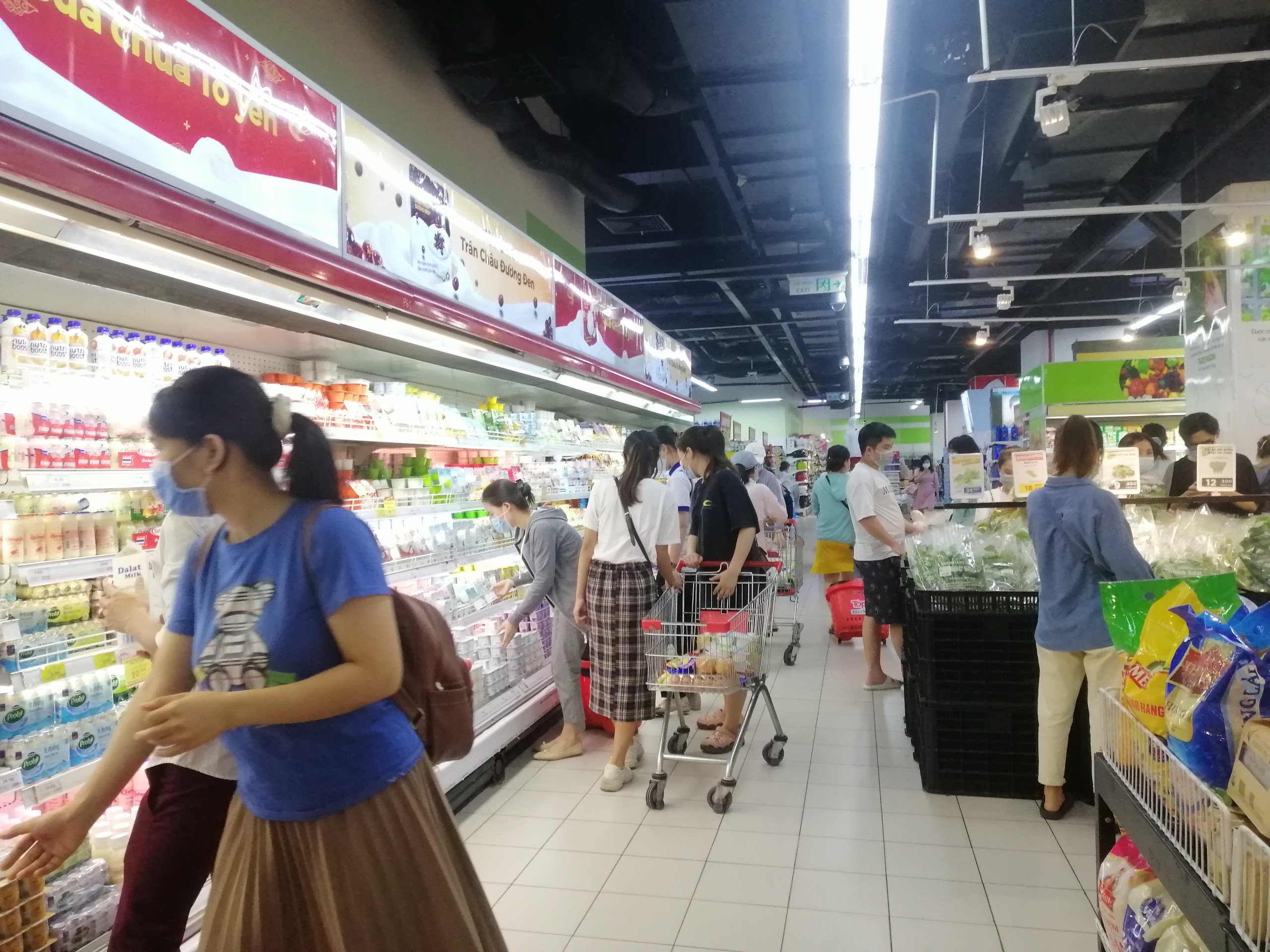 Tuy Sở Công thương Hà Nội đã cam kết đảm bảo hàng hóa, nhu yếu phẩm đầy đủ nhưng nhiều người vẫn lo lắng. Điều này dẫn đến tình trạng chen lấn mua hàng tại các siêu thị vẫn diễn ra.