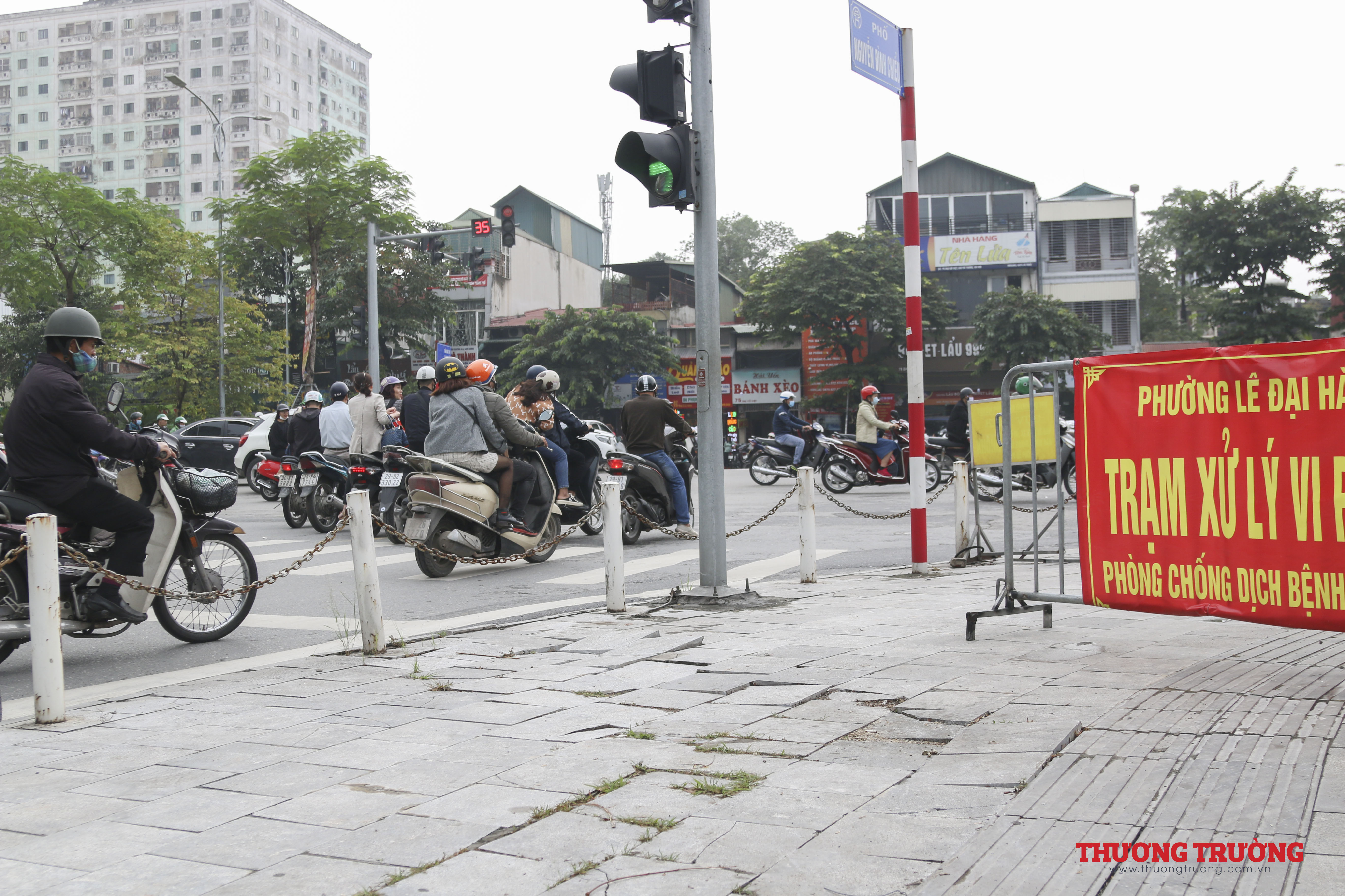 Ngay tại đường Nguyễn Chí Thanh những "ổ voi, ổ gà" xuất hiện trên vỉa hè lát đá được cho là có độ bền 70 năm. Một số người dân cho rằng việc ô tô, xe máy đỗ, đi lại trên vỉa hè là một trong những nguyên nhân gây nên tình trạng vỉa hè xuống cấp nhanh hơn so với tính toán ban đầu.